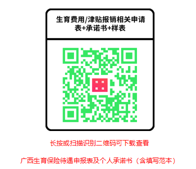 窗口办理提供《广西生育保险待遇申报表》(加盖单位公章),个人网上申报业务提供《广西生育保险待遇个人申请表》 |