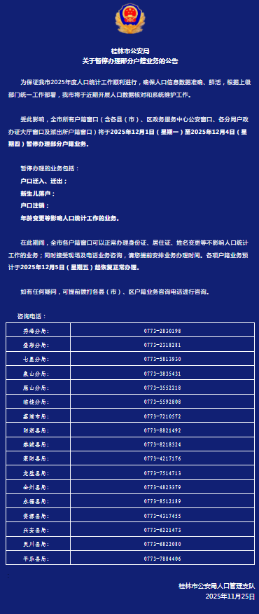关于暂停办理部分户籍业务的公告