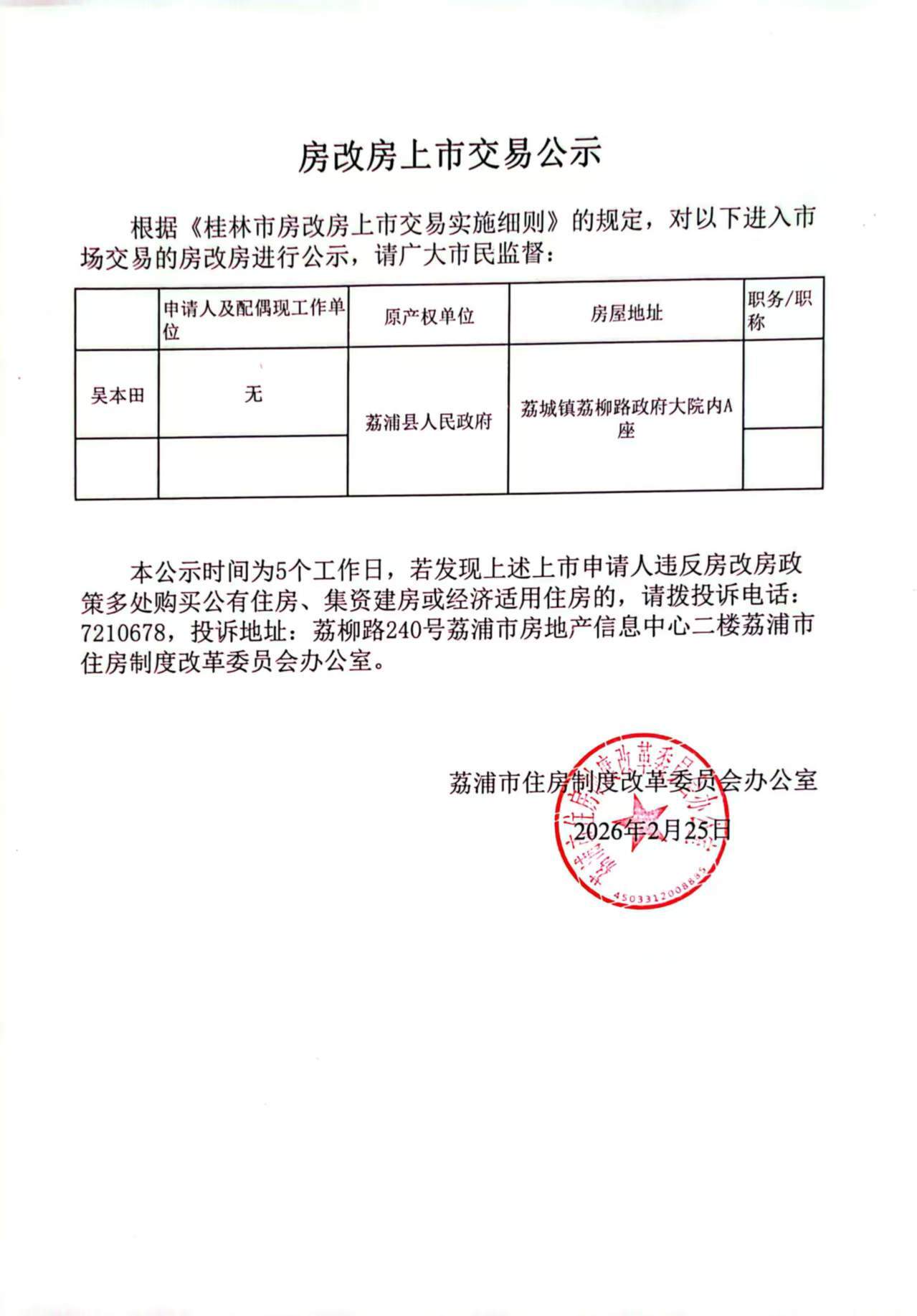 2026-02-25 17:00 来源:荔浦市房地产信息中心