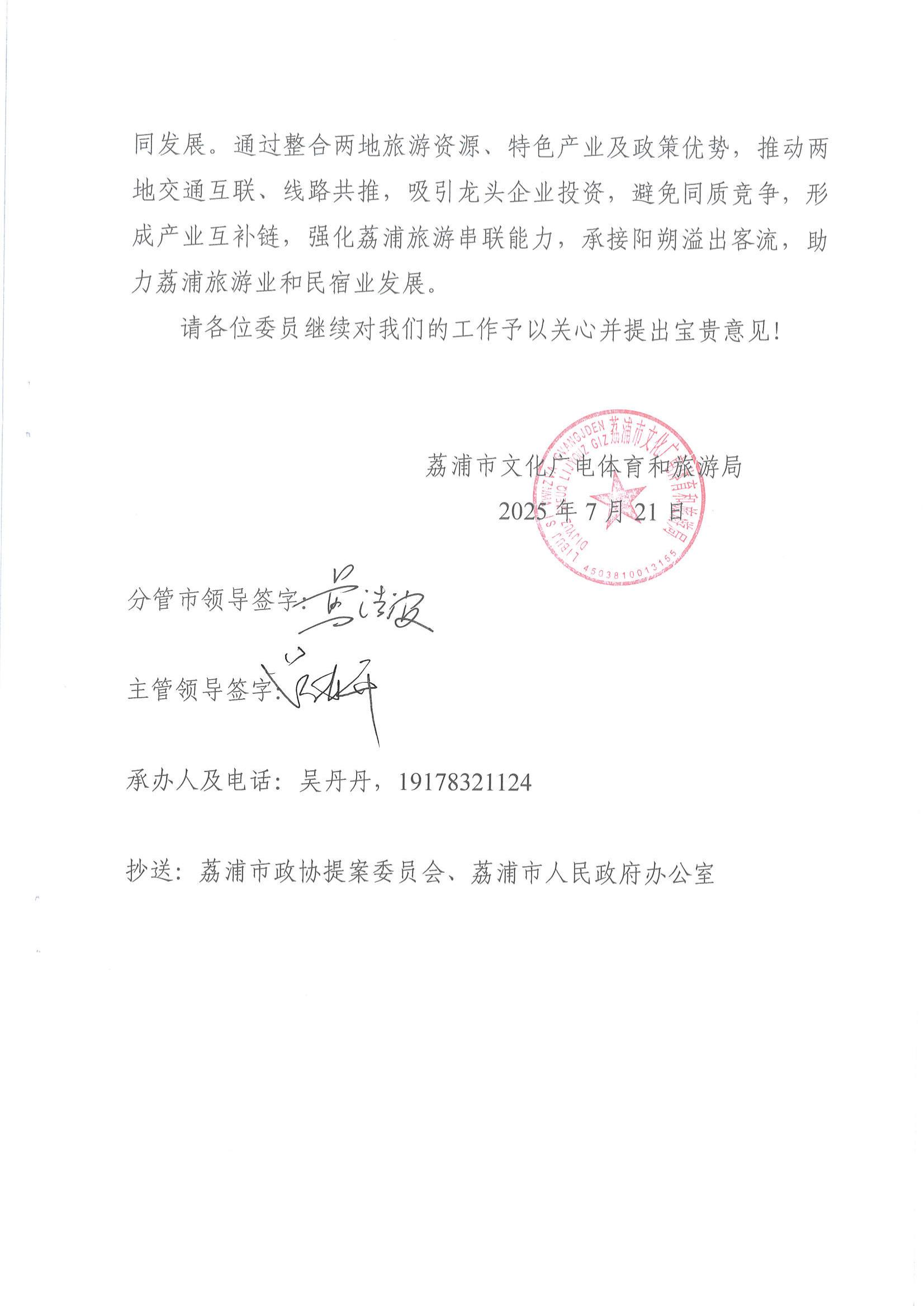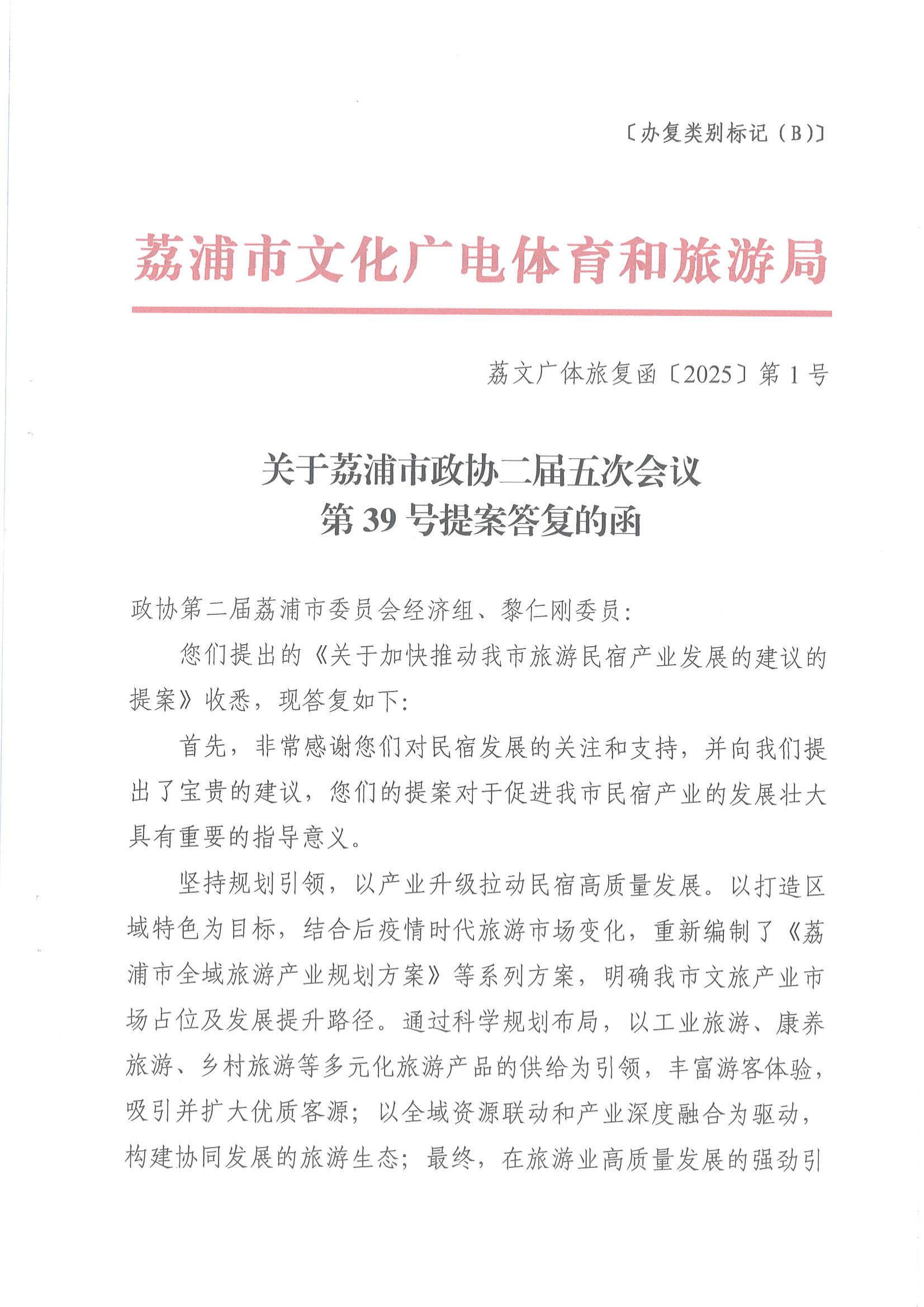 荔文广体旅复函〔2025〕第1号 关于荔浦政协二届五次会议第39号提案答复的函