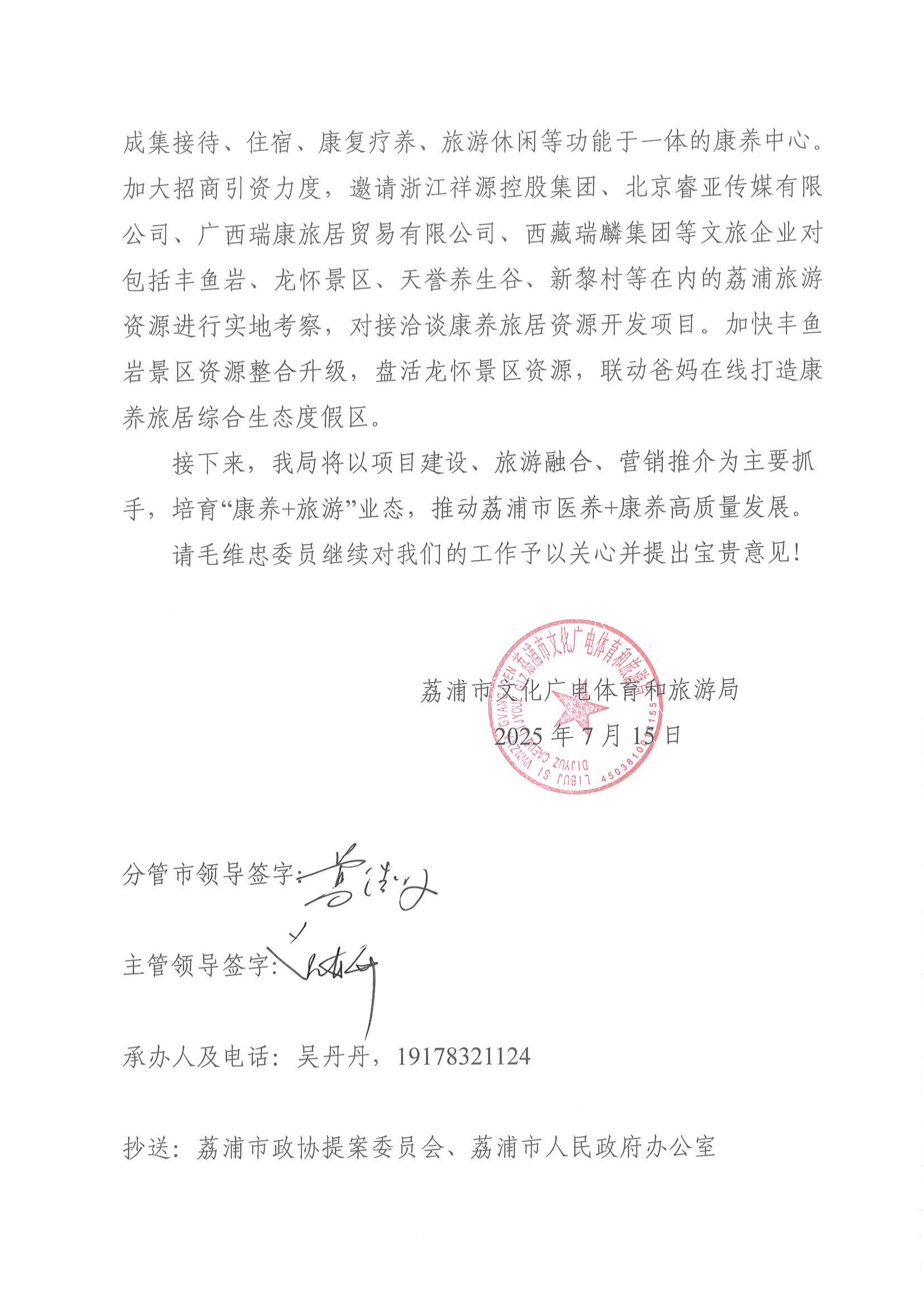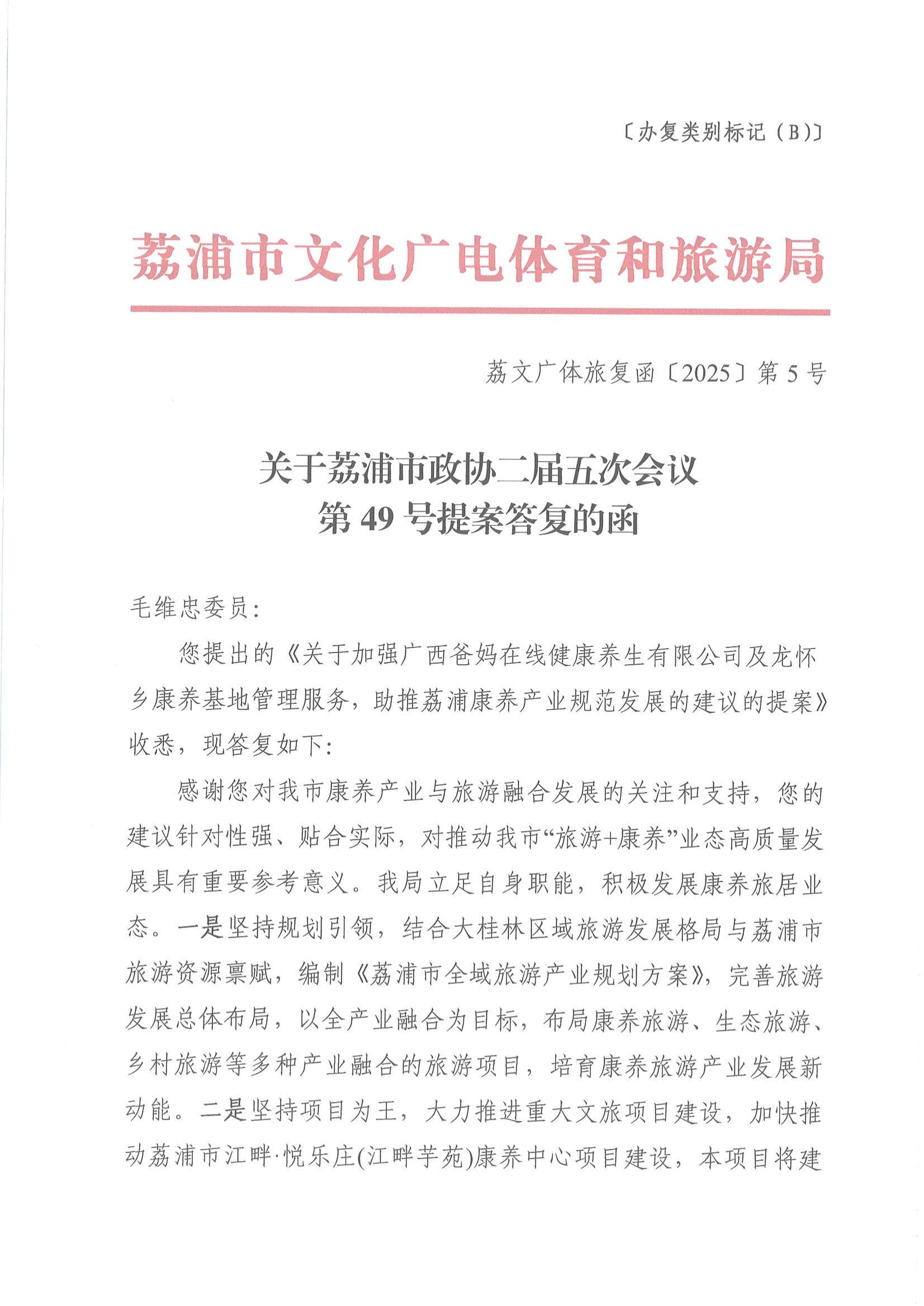 荔文广体旅复函〔2025〕第5号 关于荔浦政协二届五次会议第49号提案答复的函