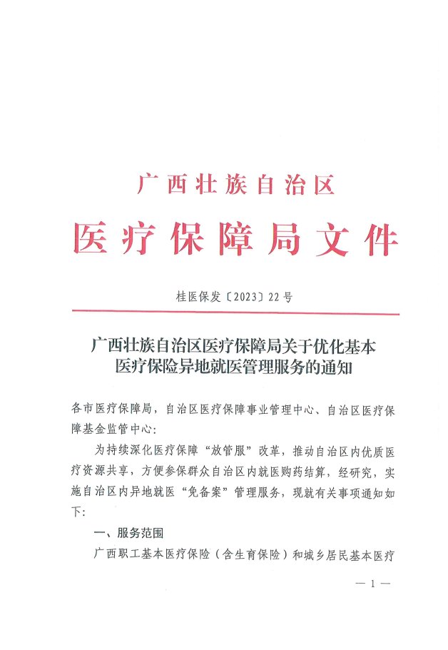 广西壮族自治区医疗保障局关于优化基本医疗保险异地就医管理服务的通知