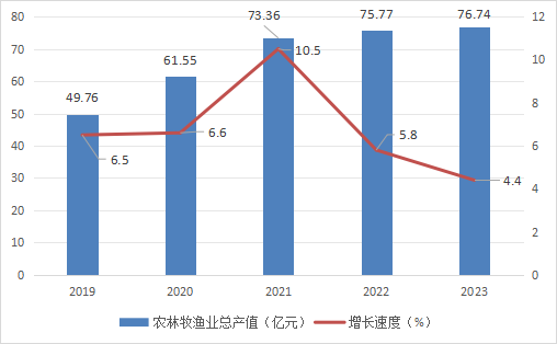 图3 2019-2023年农林牧渔业总产值及增长速度