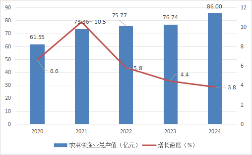 图3 2020-2024年农林牧渔业总产值及增长速度