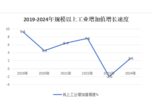 图4 2019-2024年规模以上工业增加值增长速度