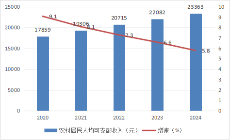 图7 2020-2024年农村居民人均可支配收入及增长速度