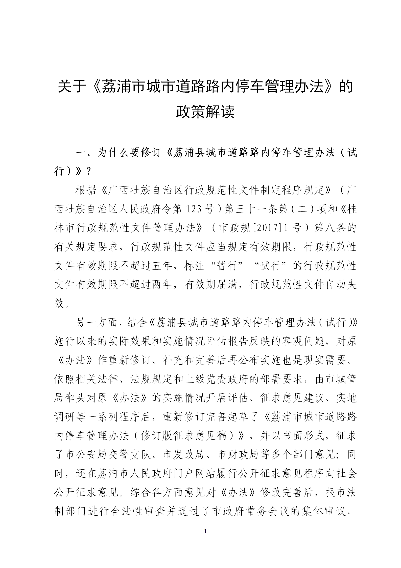政策解读:关于《荔浦市城市道路路内停车管理办法》