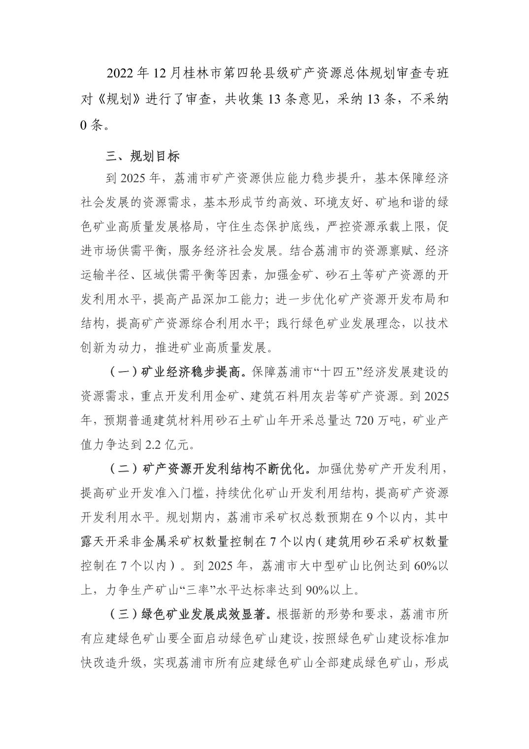 荔政发〔2023〕3号 荔浦市人民政府关于发布实施荔浦市矿产资源总体规划(2021-2025年)的通知