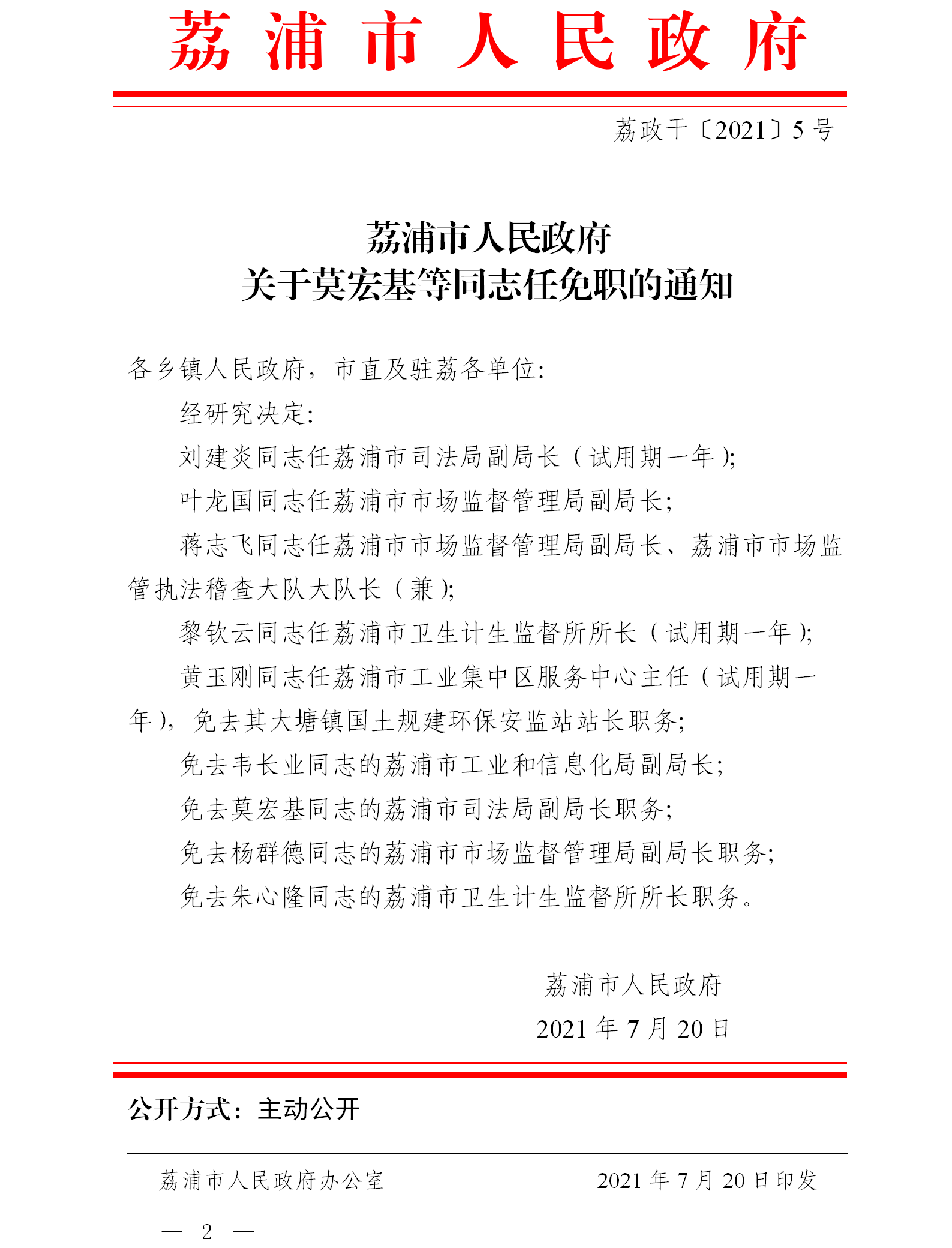 荔政干〔2021〕5号 关于莫宏基等同志任免职的通知