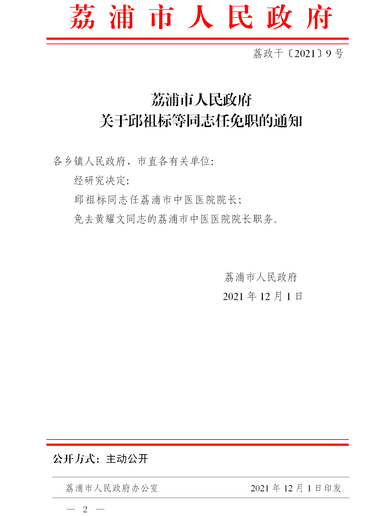 荔政干[2021]9号关于邱祖标等同志任免职的通知