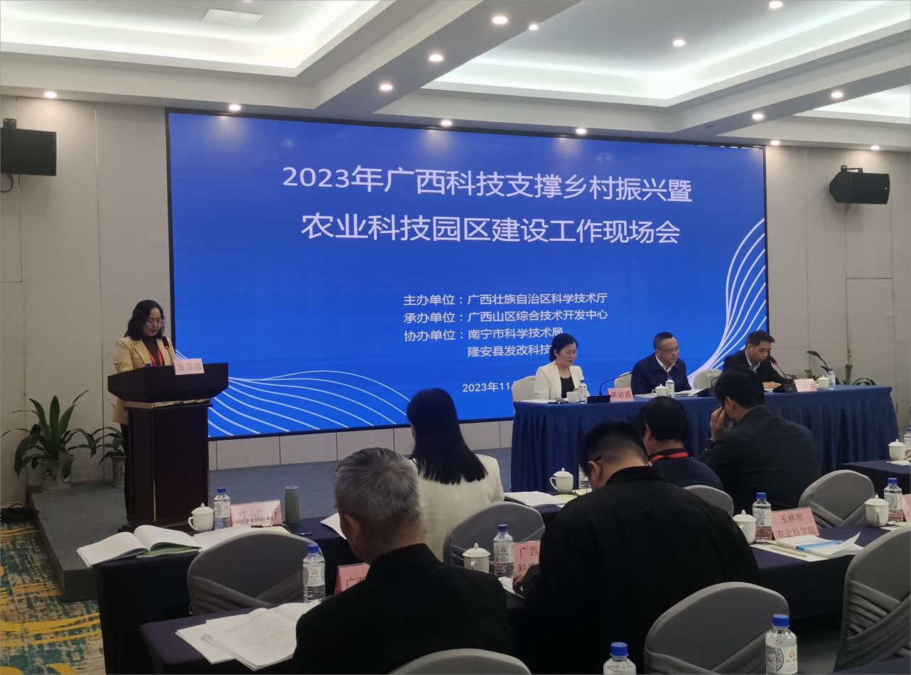 2023年11月22日,荔浦市科学技术局黄柳丽局长在自治区科技厅召开的广西科技支撑乡村振兴暨农业科技园区建设工作现场会上作典型发言。