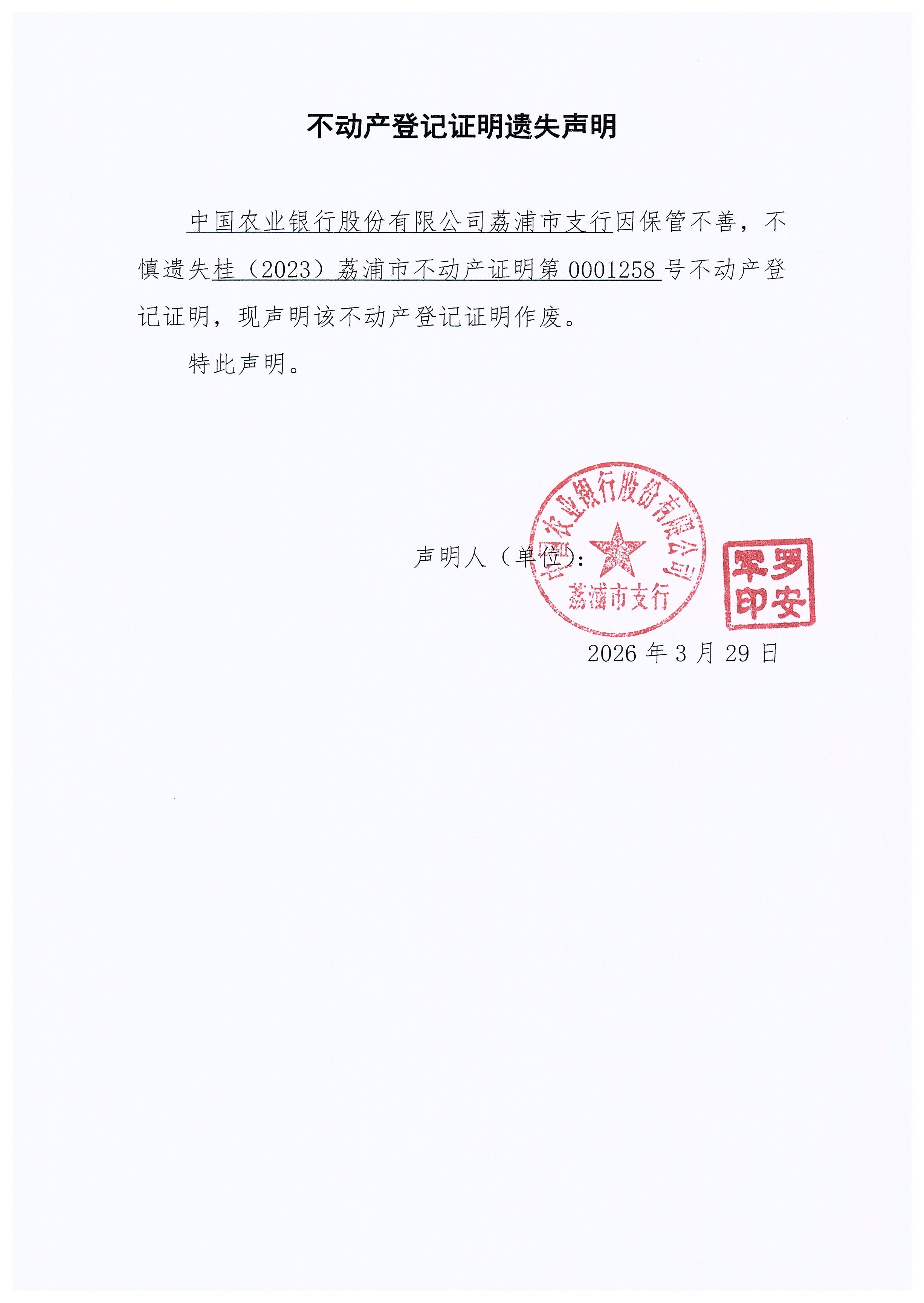 1258号证明 遗失声明