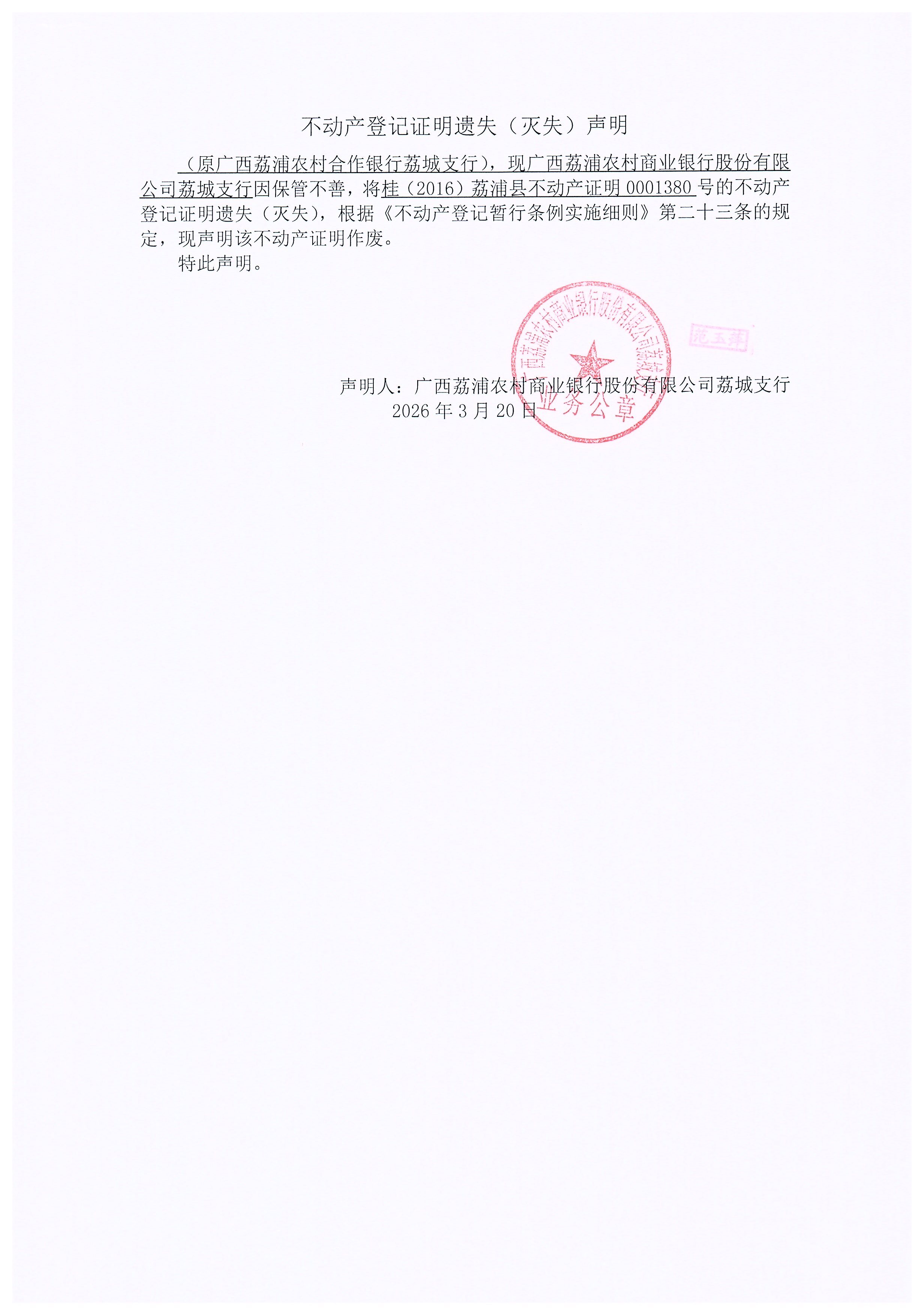 1380号证明 遗失声明