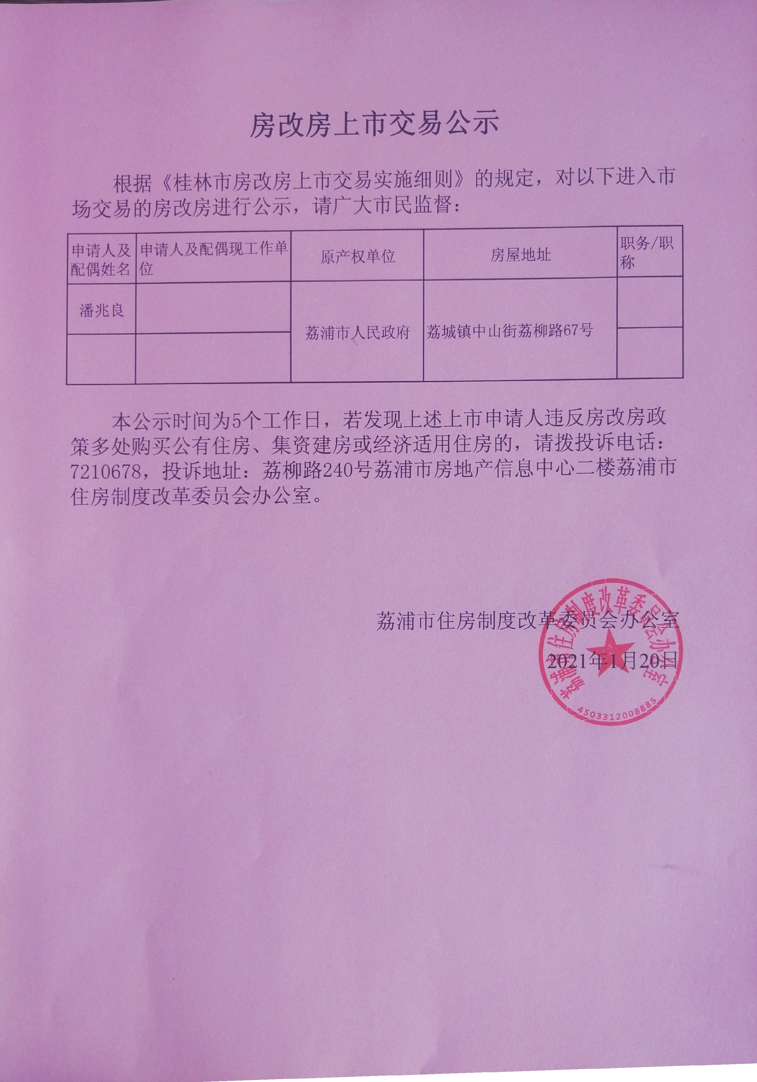 房改房上市交易公示