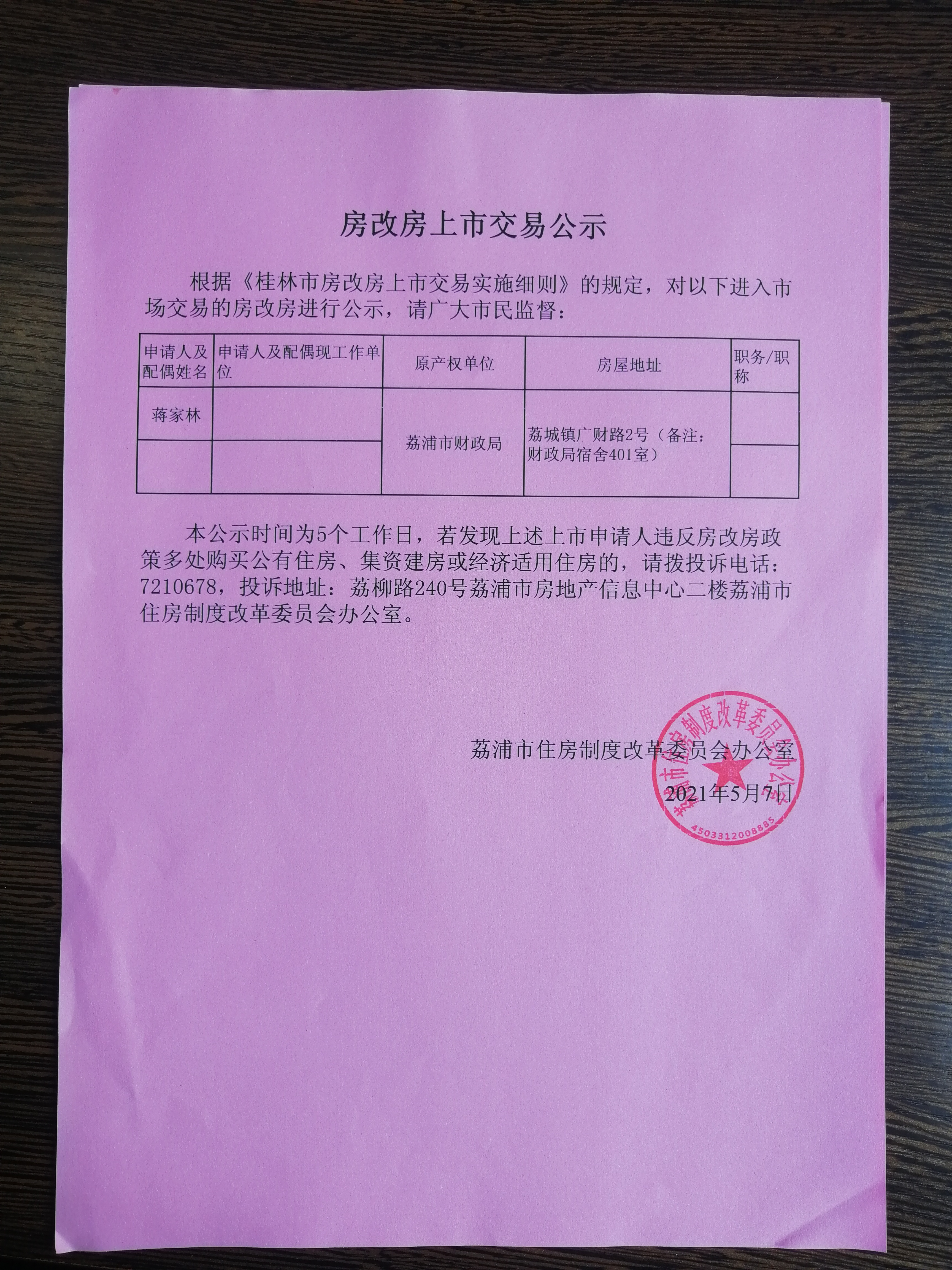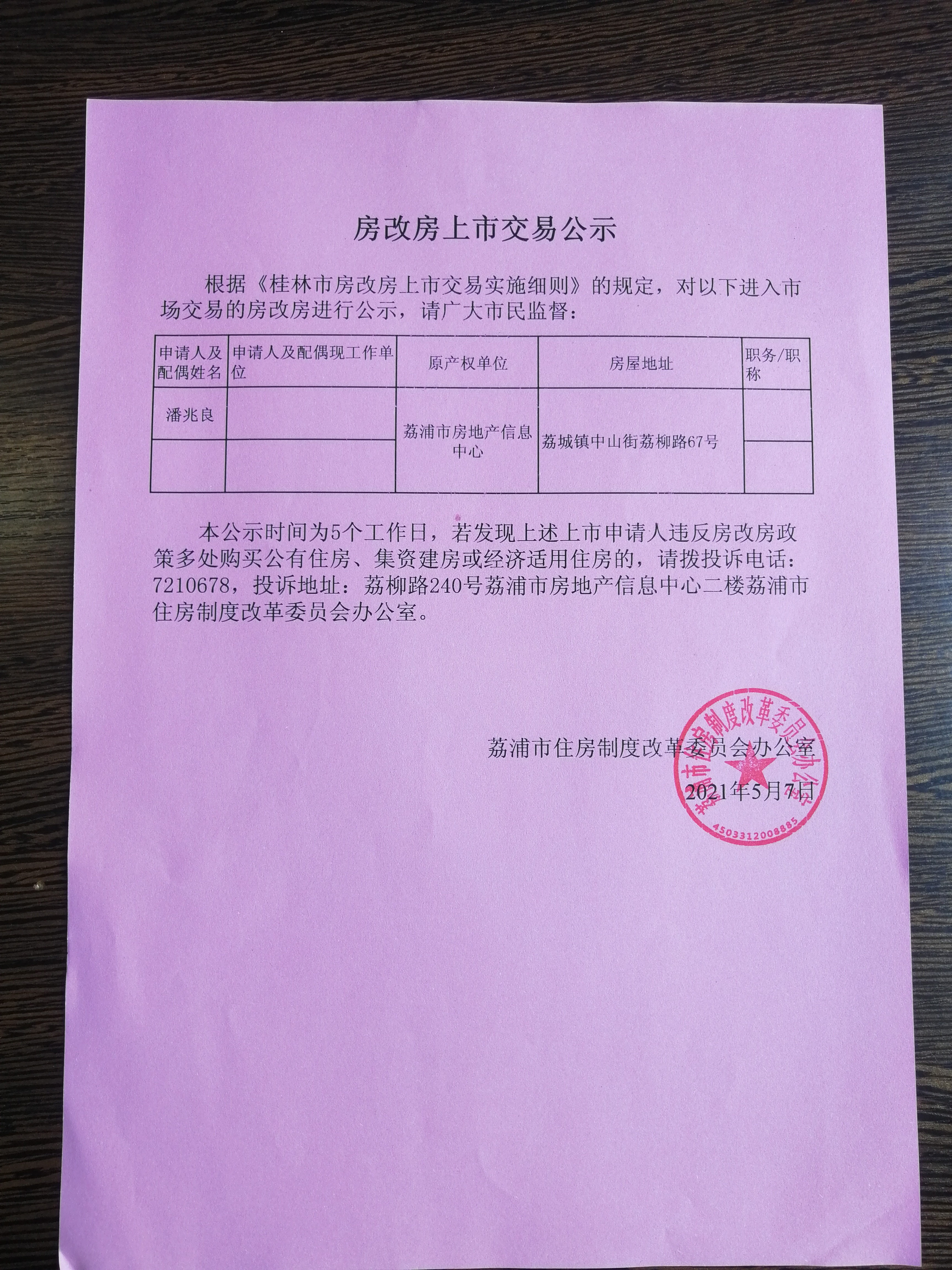 房改房上市交易公示