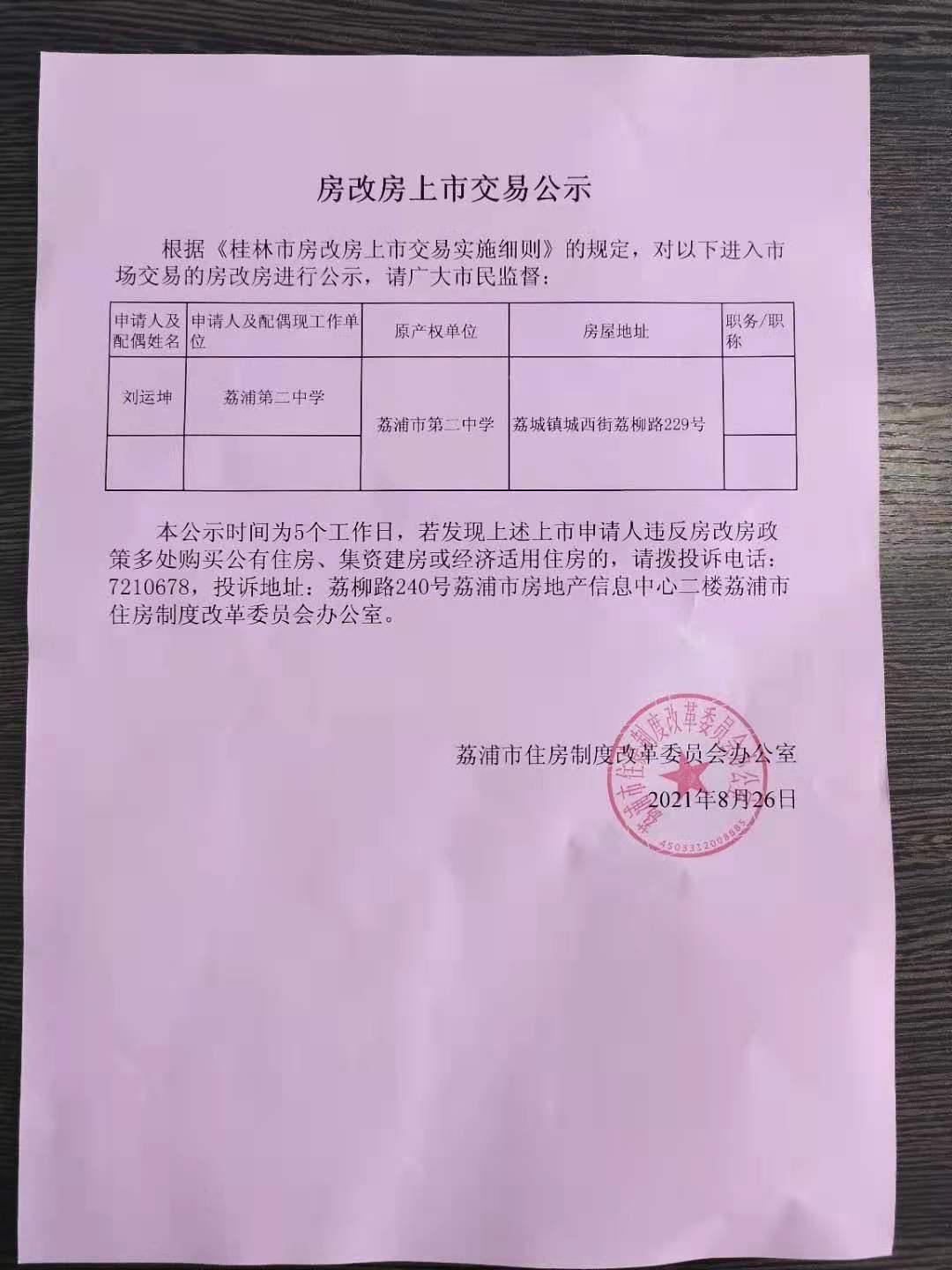 房改房上市交易公示
