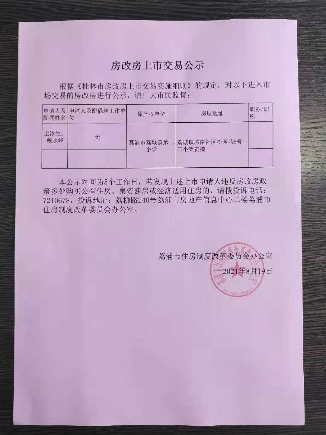 房改房上市交易公示