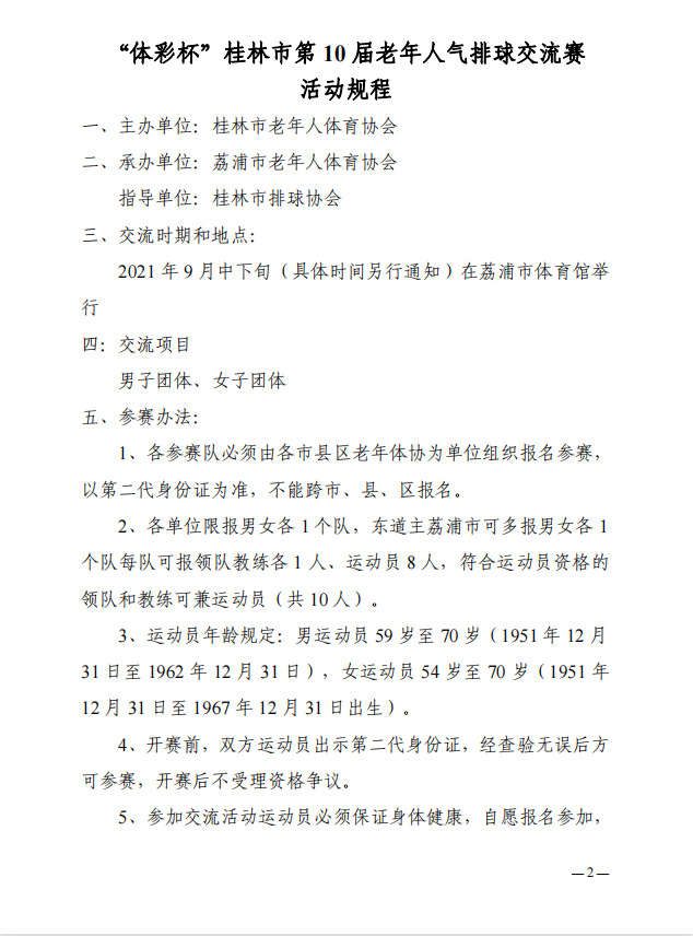 “体彩杯”桂林市第10届老年人气排球交流赛活动规程