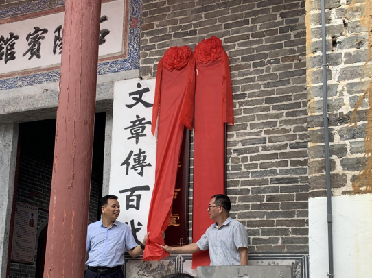 副局长詹勋富(右)为荔浦市讲古堂揭牌。