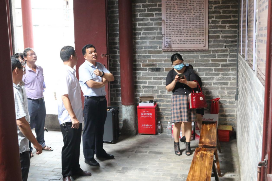 荔浦市委常委、宣传部部长何彰贤(右二)参观石阳宾馆
