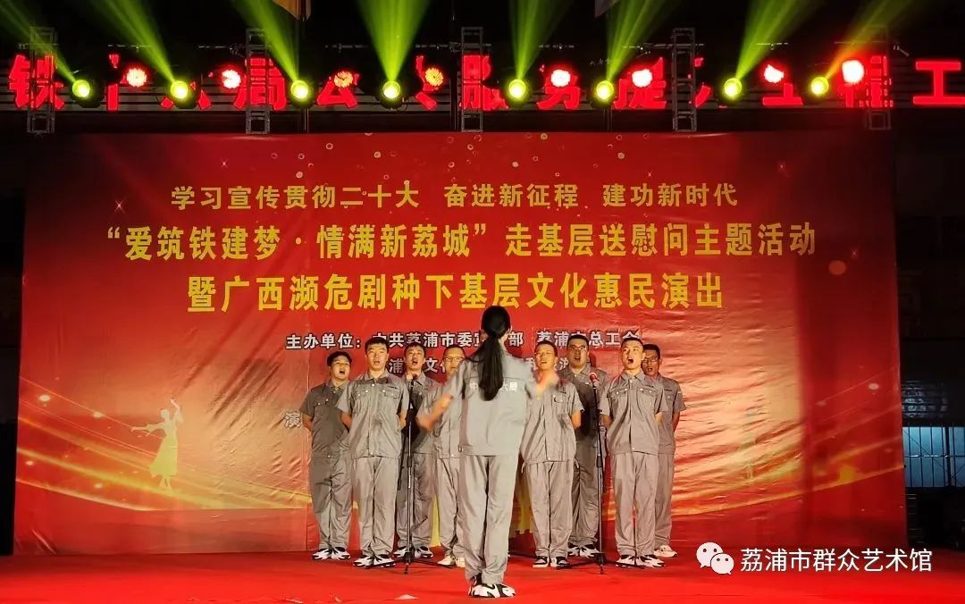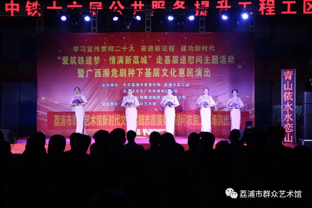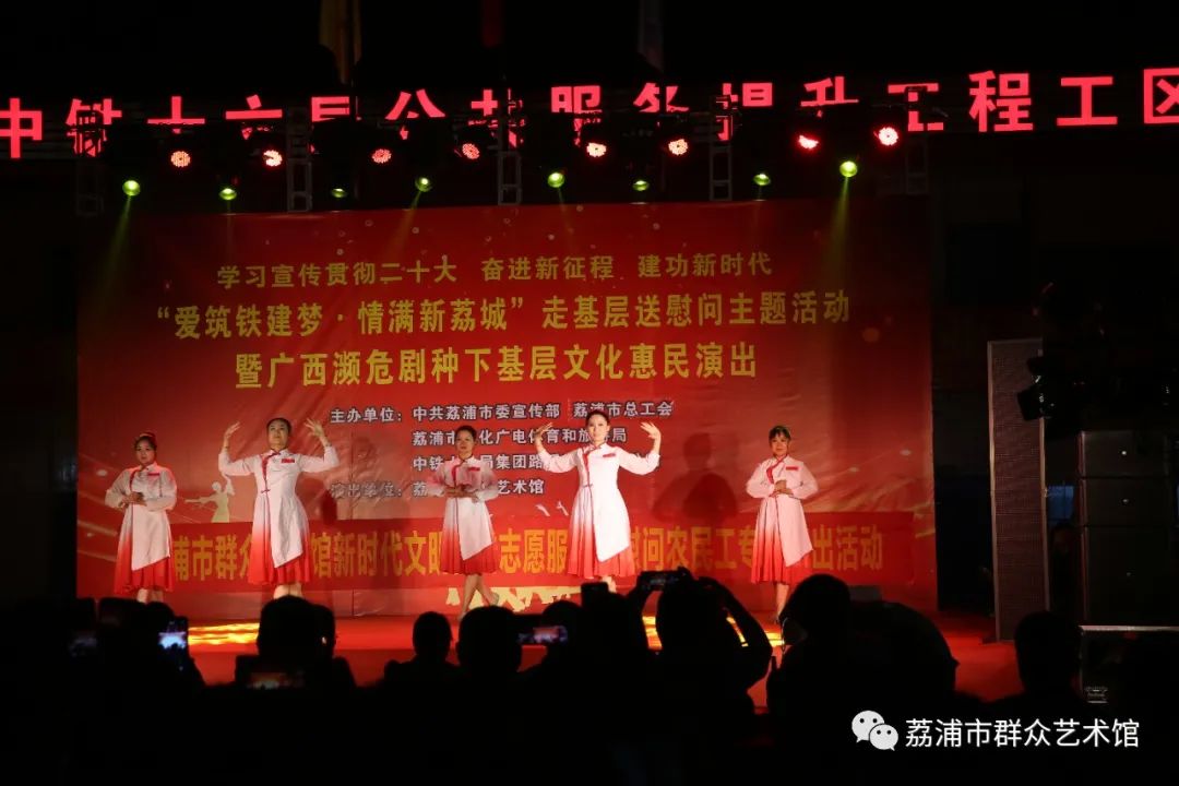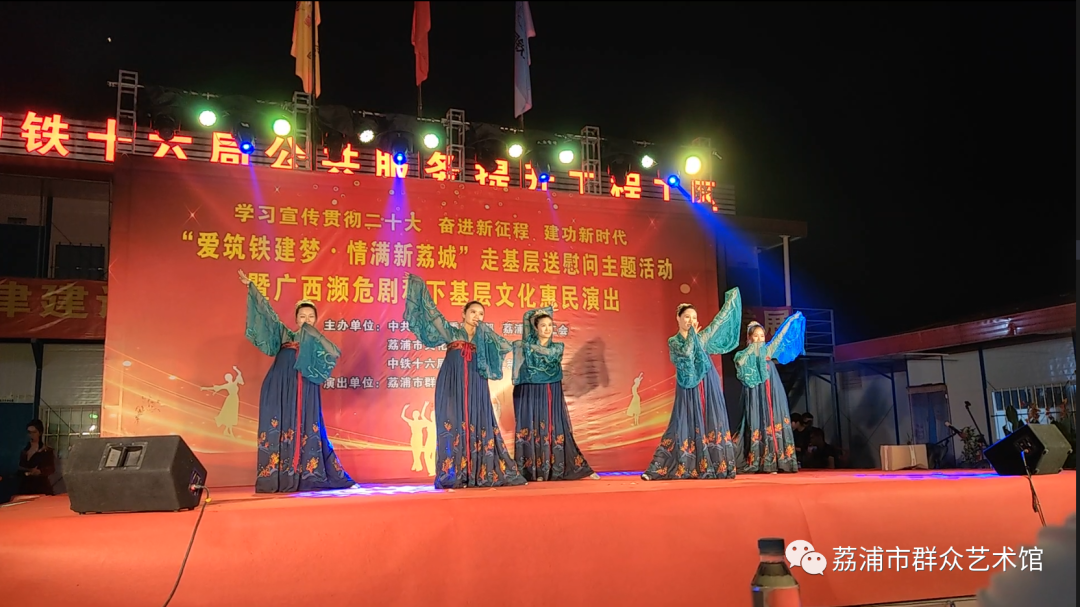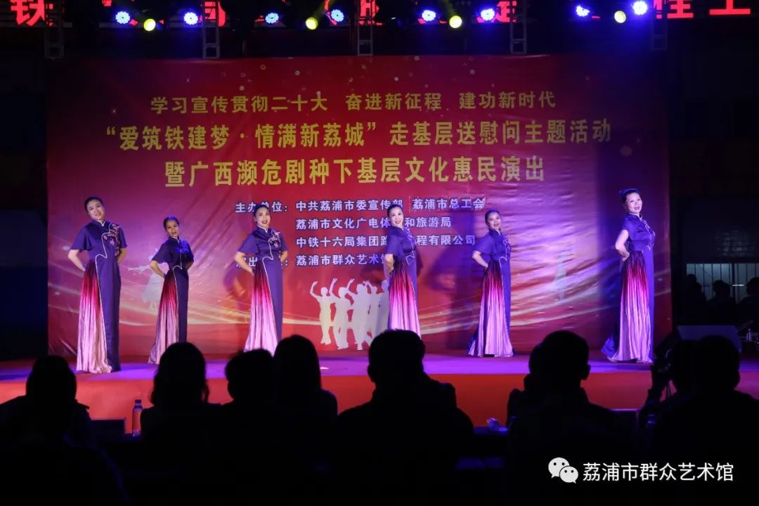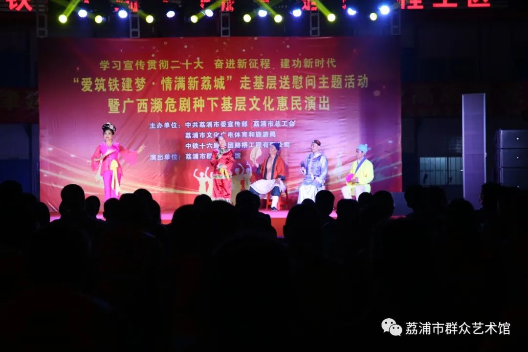 5月25日晚,中铁十六局集团路桥工程有限公司工会与荔浦市文化广电体育和旅游局工会在中铁十六局集团路桥工程有限公司荔浦项目部联合举行“爱筑铁建梦·情满新荔城”走基层送慰问主题活动暨广西濒危剧种下基层文化惠民演出文艺晚会。荔浦市政协副主席、总工会主席张维娟,荔浦市文化广电体育和旅游局局长曾妍、副局长詹勋富,荔浦市公安局副局长蒙春松,中铁十六局集团路桥工程有限公司党委常委、工会主席武晓丽,工会办主任刘丽娟,荔浦项目部党支部书记刘庆国、项目经理马良等领导及项目房建工区工人等200余人现场观看了晚会文艺演出。