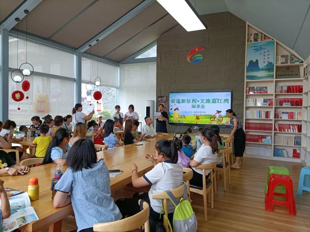 为推动文化旅游融合发展,深入开展全民阅读活动,进一步丰富人民的文化生活,营造良好的读书氛围,6月25日,在荔浦市荔江湾景区开展了“奋进新征程•文旅荔江湾”阅读分享会,参与单位有荔浦市文广体旅局非物质文化遗产股、荔浦市图书馆、荔浦市蓝天幼教集团第四幼儿园,有100多人参加了此次活动。