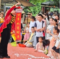 游客们不仅大饱眼福,更踊跃参与互动,跟着舞者学基础舞步,挑战“击槌纳福”游戏,节奏正确就能带走小礼品。投币纳福等趣味活动也让大家玩得不亦乐乎,现场欢笑不断,传统文化在互动中焕发新生。