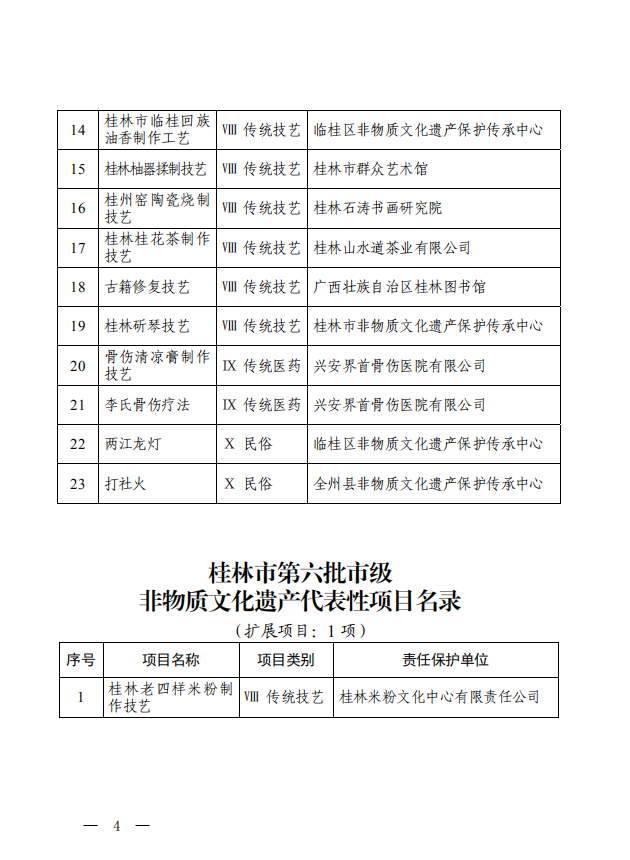 桂林市人民政府关于公布桂林市第六批市级非物质文化遗产代表性项目名录的通知