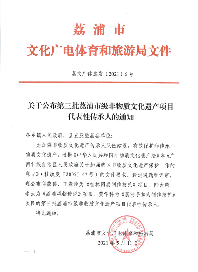 关于公布第三批荔浦市级非物质文化遗产项目代表性传承人的通知