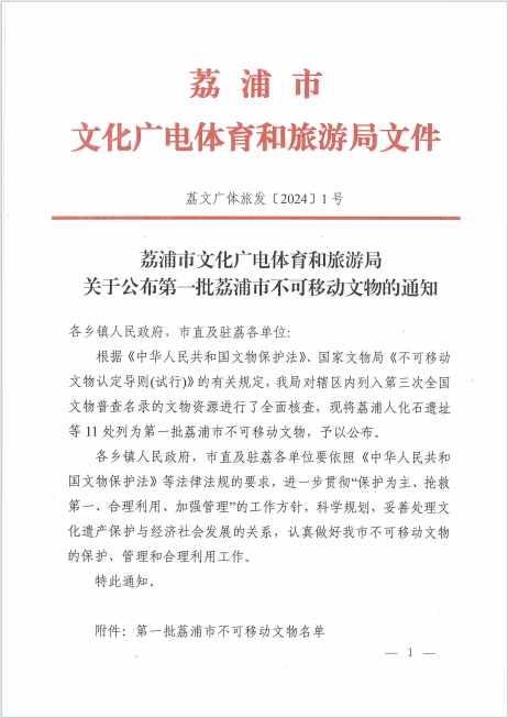 荔文广体旅发〔2024〕1号 荔浦市文化广电体育和旅游局关于公布第一批荔浦市不可移动文物的通知