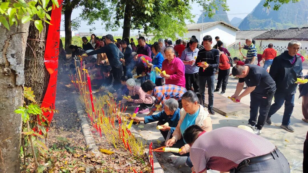 荔浦始建于西汉元鼎六年,经过两千多年的历史积淀,遗留下大量珍贵文化资源,也孕育出大量珍稀民情风俗,当地多元民俗活动和庙会文化,为社日祭祀的发展搭建了展现的平台,形成了别具地域特色的荔浦社日祭祀习俗。社日祭祀分为春社和秋社两个时期,春社祈谷,祈求社神赐福、五谷丰登;秋社报神,在丰收之后,报告社神丰收喜讯,答谢社神。土地神在荔浦被称为社王或社王公公,为一块大石头或似无头人像。