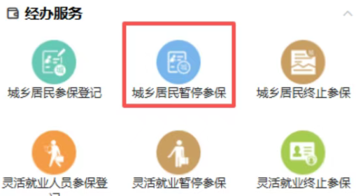 3. 点击【服务】,找到【经办服务】,点击【城乡居民暂停参保】