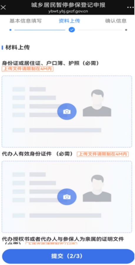 5.上传对应材料,点击“下一步”,确认信息无误后提交