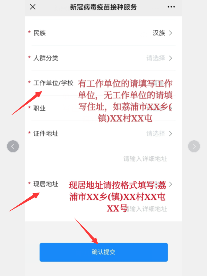 有工作单位填写工作单位,如无工作单位请填写详细居住地址,居住地址格式:荔浦市XX乡(镇)XX村XX屯。