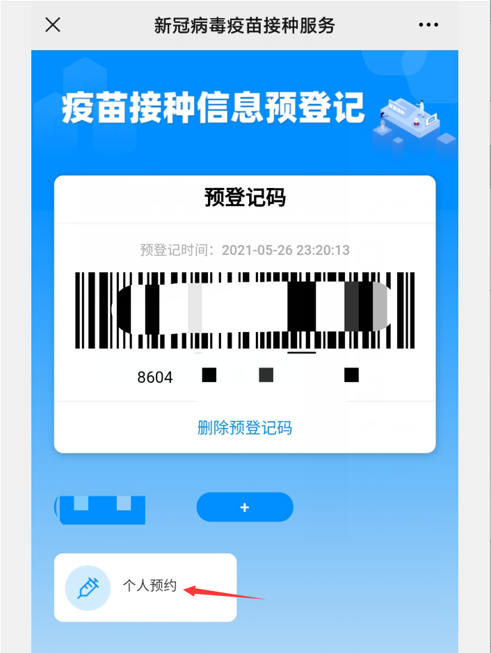 第三步:完成疫苗接种信息预登记后,生成预登记码(不会预约的群众操作到此即可),点击“预约接种”并查看新冠病毒疫苗接种注意事项。