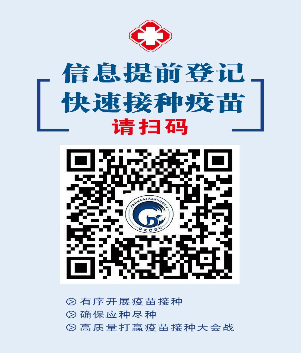 公众可通过登录“健康八桂”或“广西疾控”微信公众号“个人新冠病毒疫苗接种预约”菜单或微信扫描下方二维码进行预约。