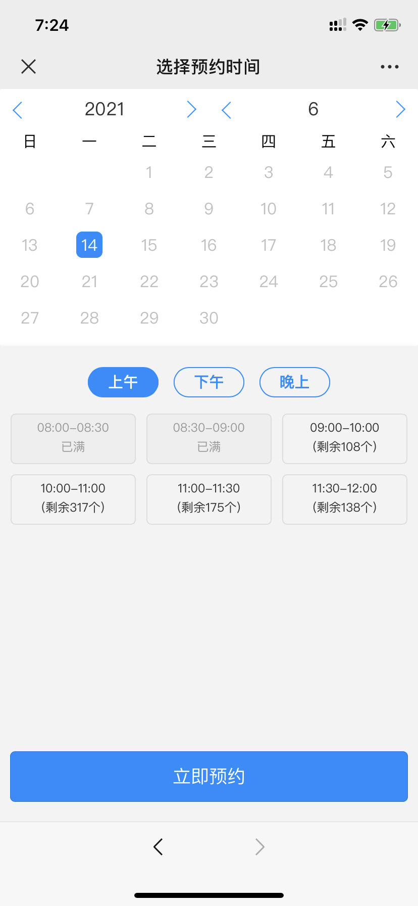 选择有剩余号源的接种日期和接种时段,并完成预约。