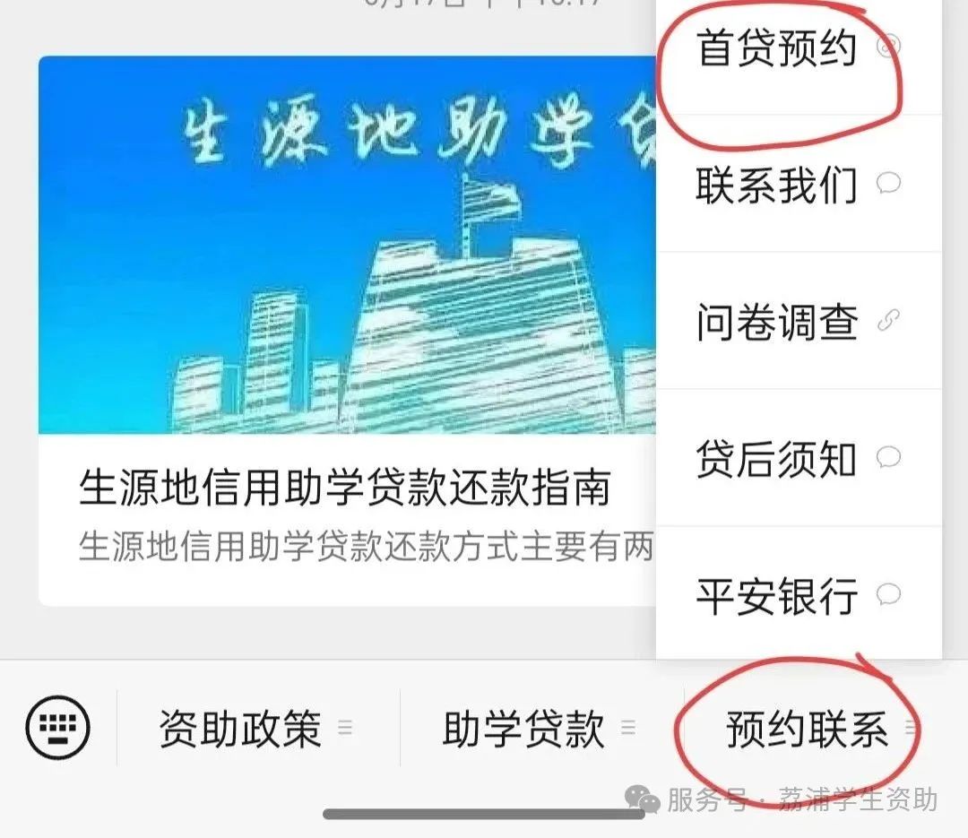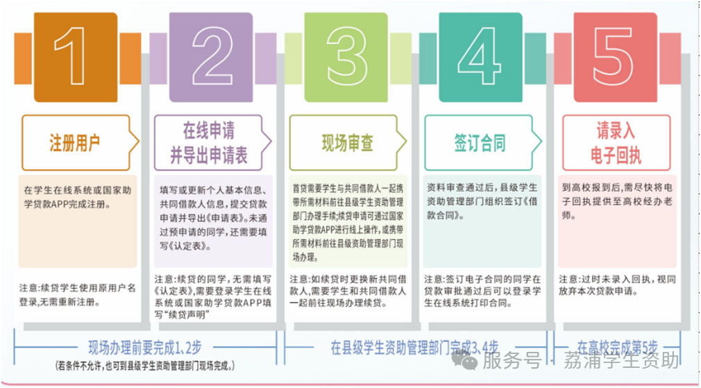 为了方便大家快速便捷办理贷款,避免人员扎堆聚集,请提前在“荔浦学生资助”微信公众号中预约办理时间,在预约时间内与共同借款人携带材料到荔浦市学生资助中心现场办理贷款。(荔浦市学生资助中心每天通过公众号开放80个预约名额)