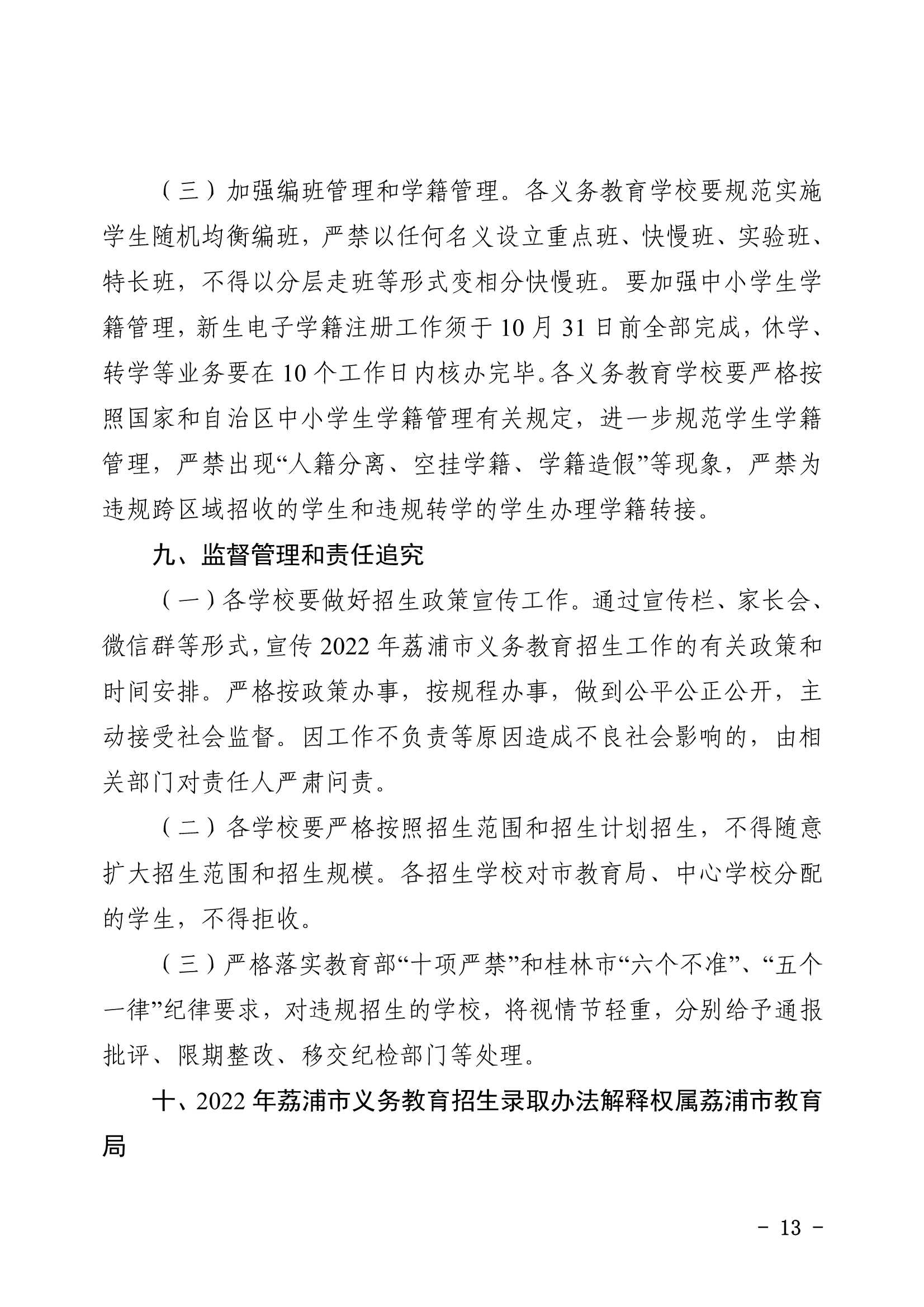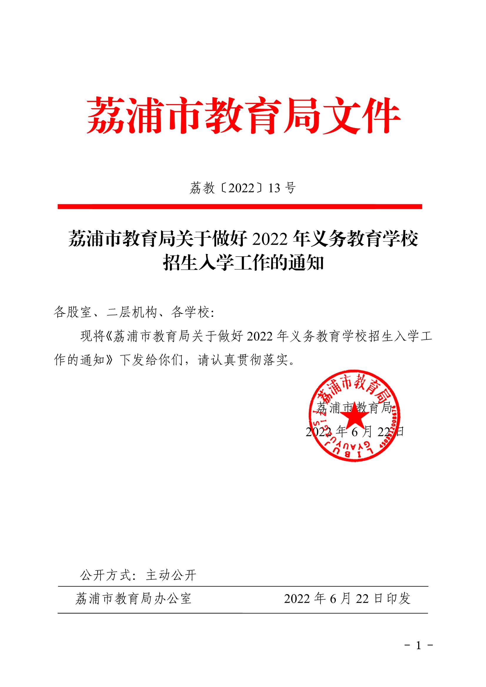 荔教〔2022〕13号荔浦市教育局关于做好2022年义务教育学校招生入学工作的通知