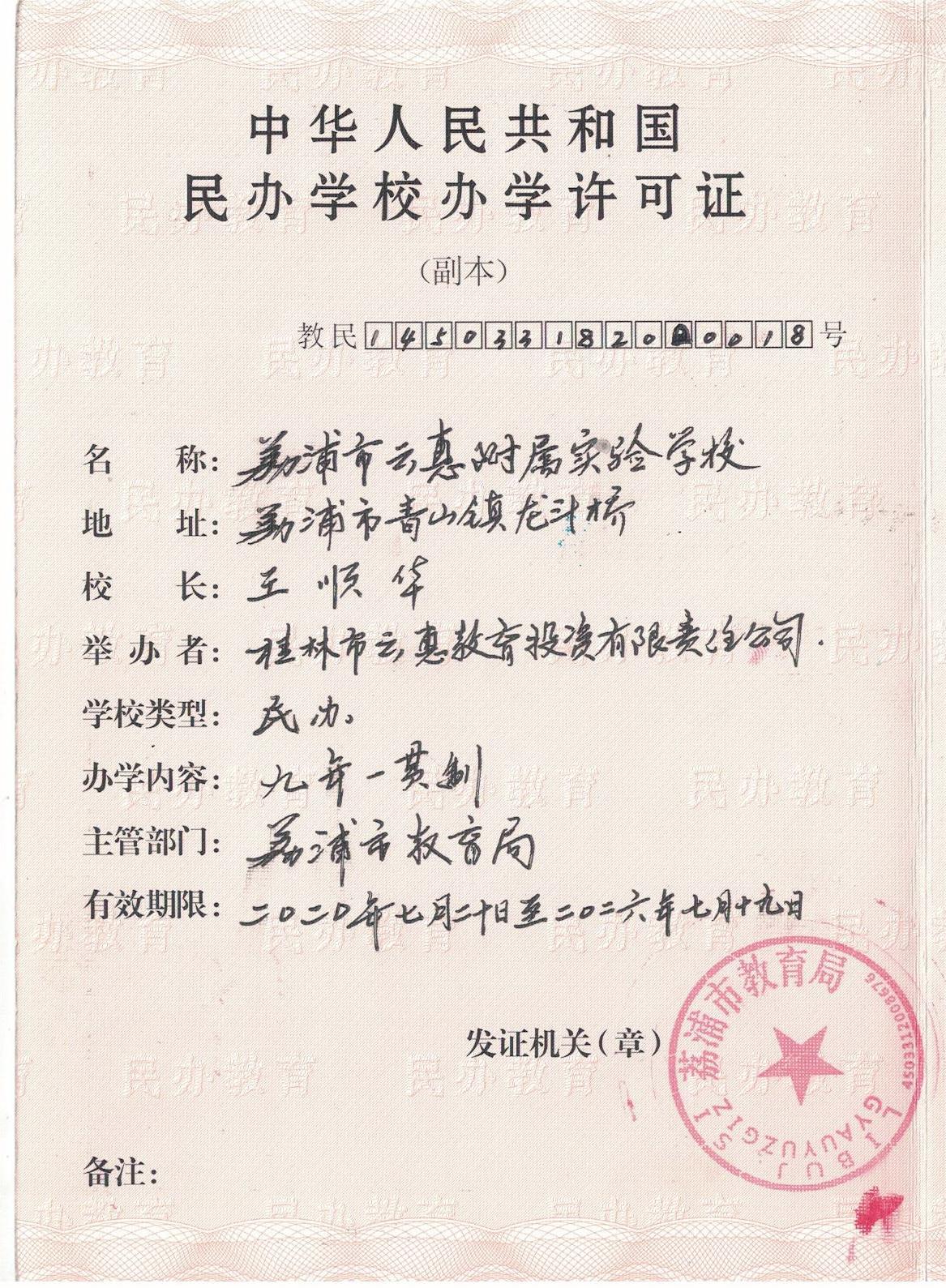 云惠学校办学许可证