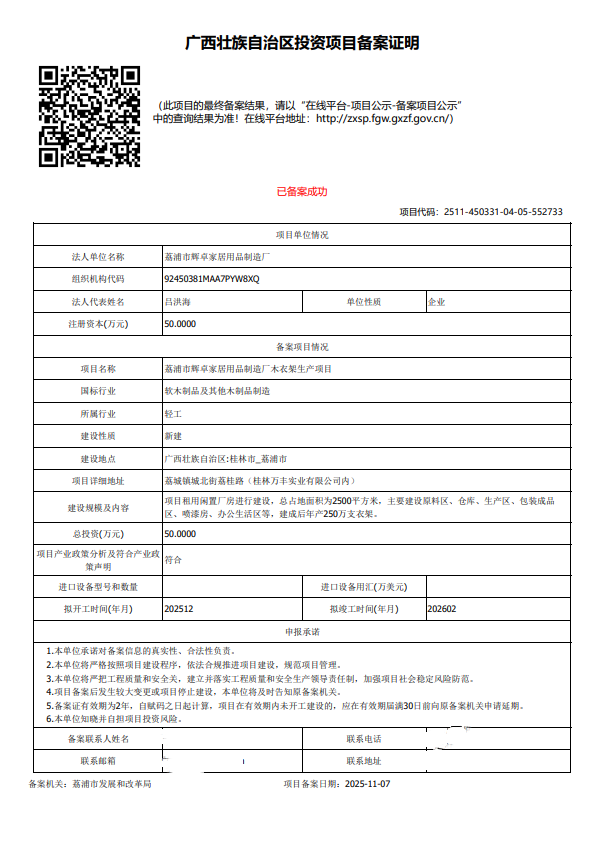 荔浦市辉卓家居用品制造厂木衣架生产项目