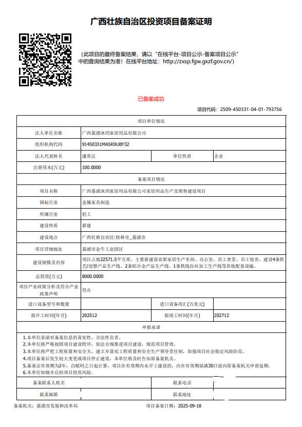 广西荔浦沐玥家居用品有限公司家居用品生产及销售建设项目