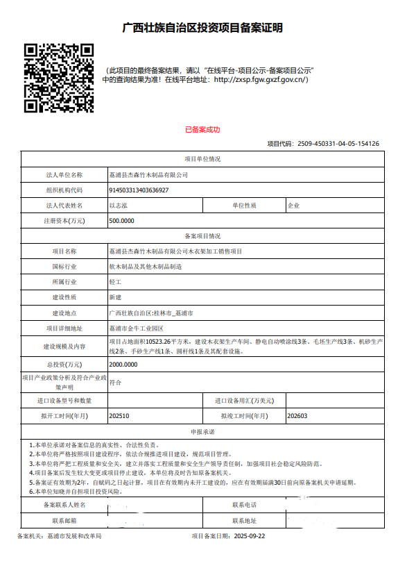 荔浦县杰森竹木制品有限公司木衣架加工销售项目