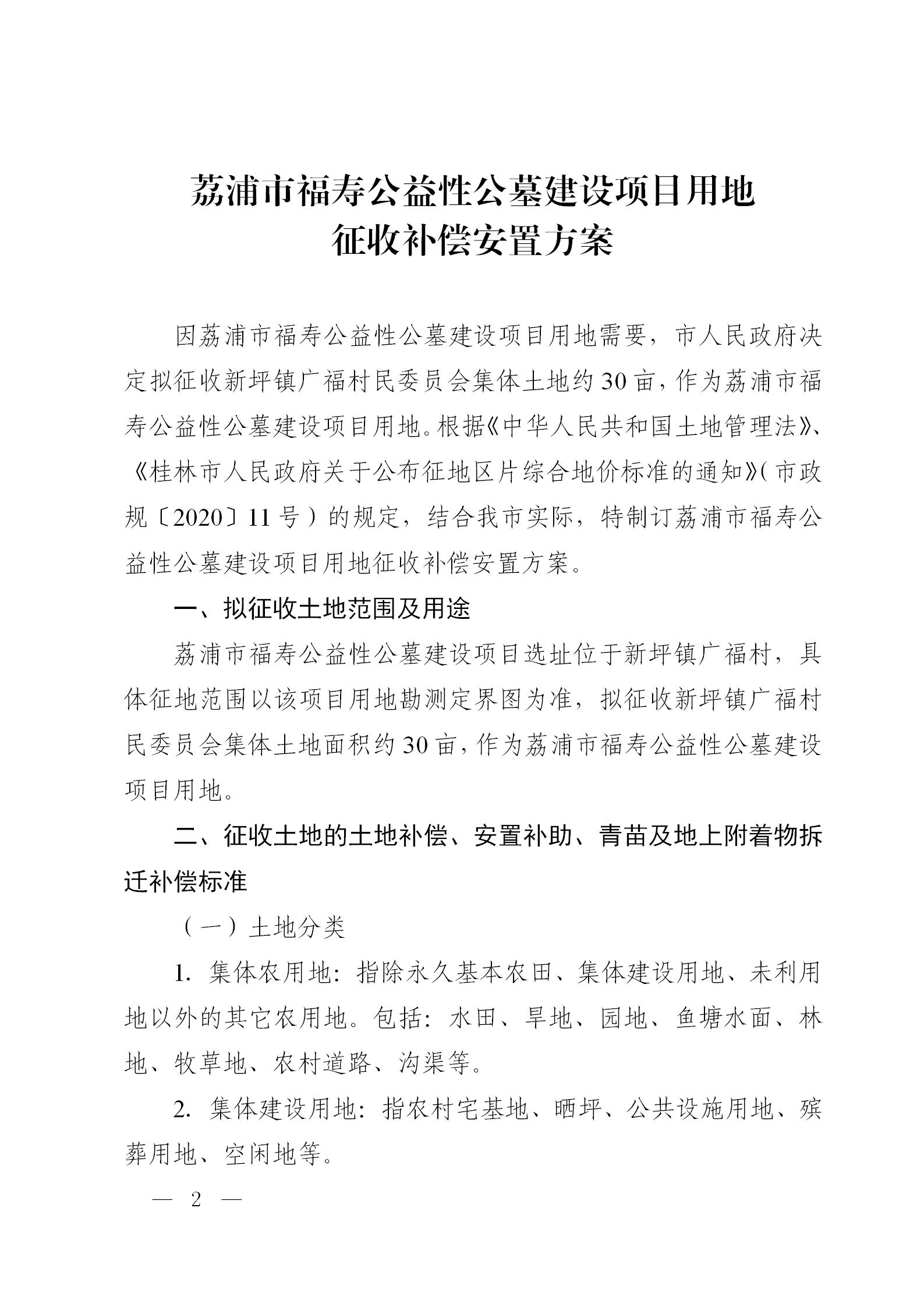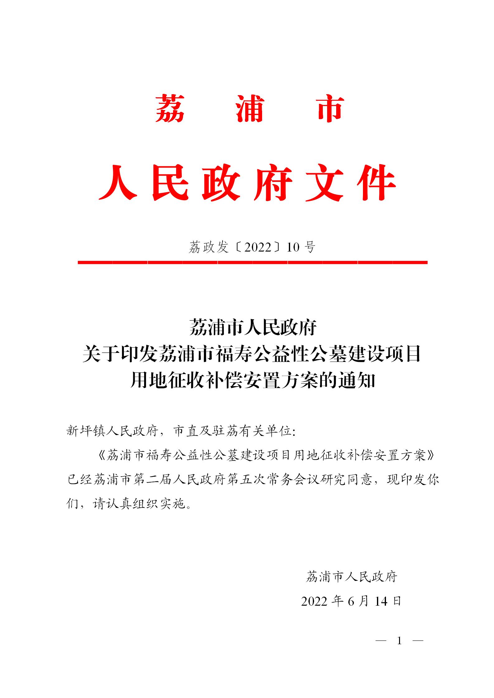荔政发〔2022〕10号 关于印发荔浦市福寿公益性公墓建设项目用地征收补偿安置方案的通知