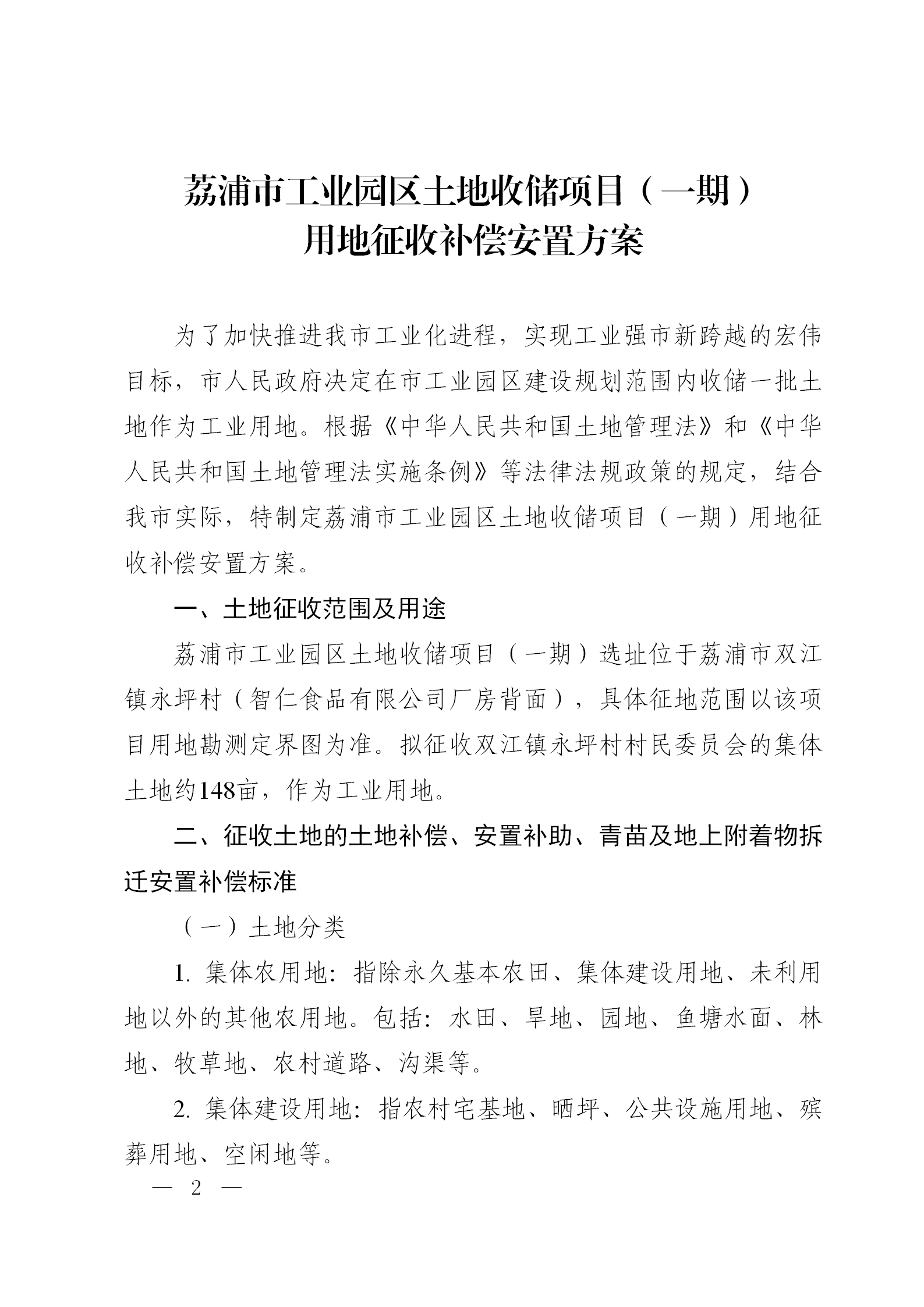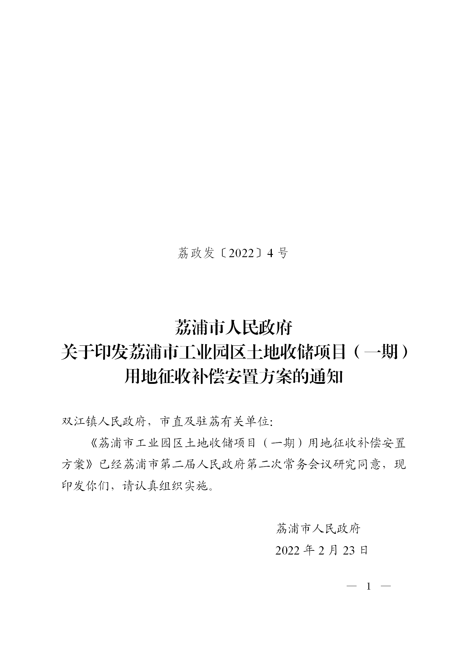 荔政〔2022〕4号 关于印发荔浦市工业园区土地收储项目(一期)用地征收补偿安置方案的通知