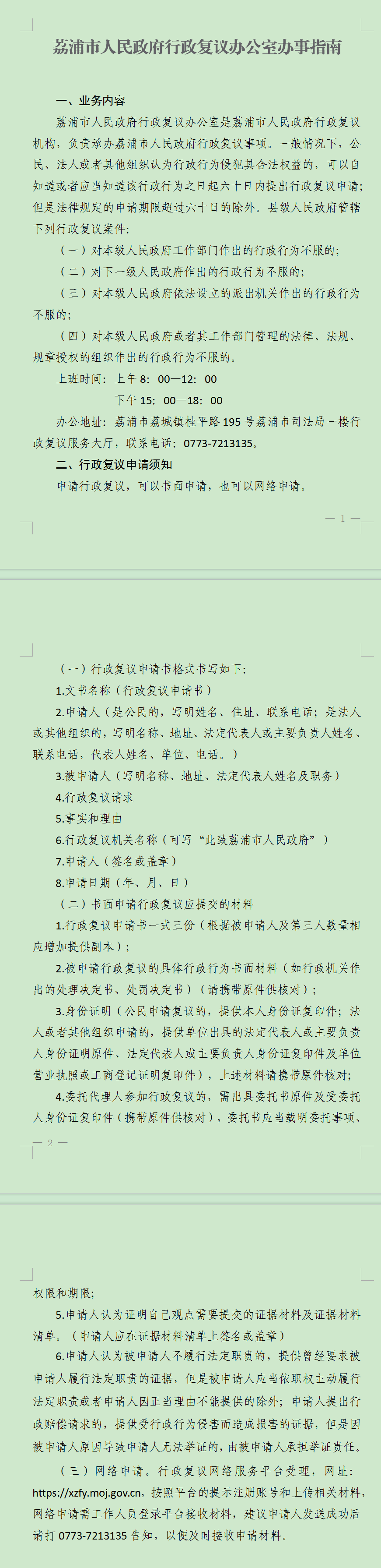 荔浦市人民政府行政复议办公室办事指南