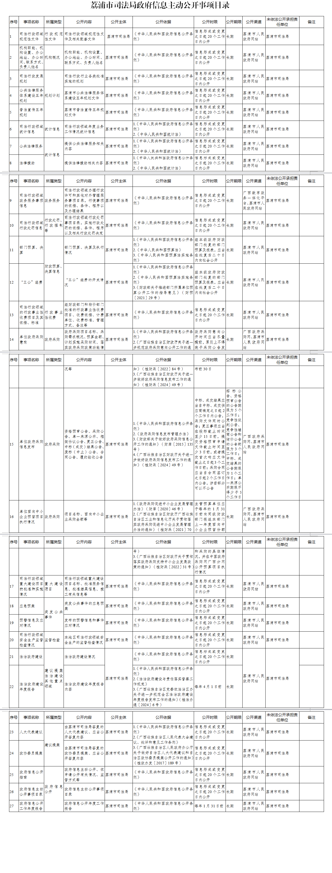 荔浦市司法局政府信息主动公开事项目录