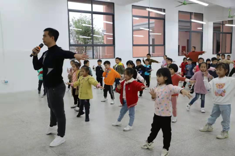 (二)低年级:5•1课程,每天1样活动,5天不重复。以体艺活动为主,开设有拉丁舞、少儿舞蹈、绘画、花式篮球、趣言小主播等10个社团。