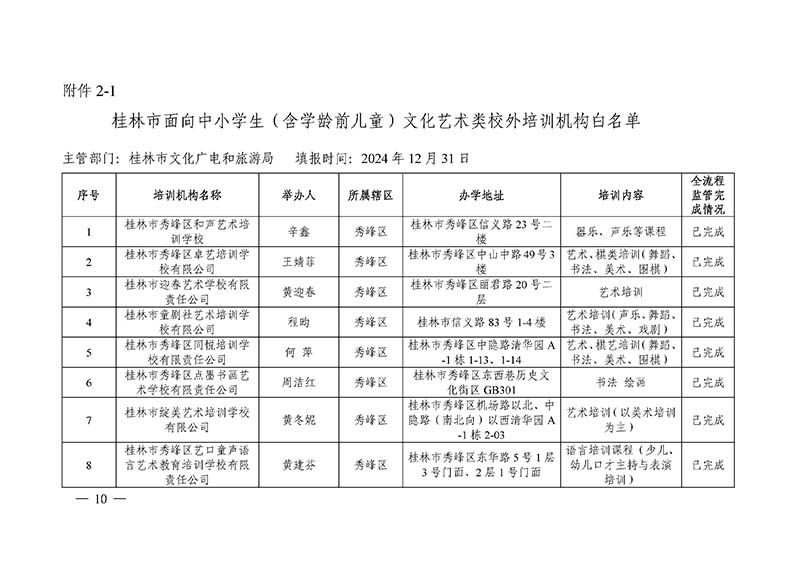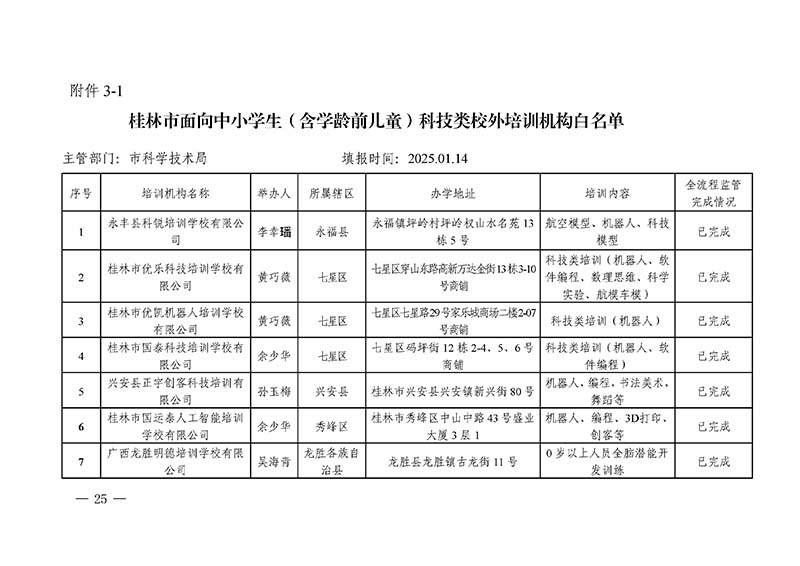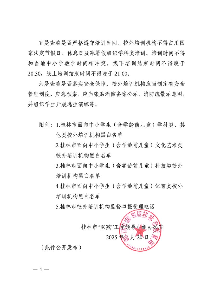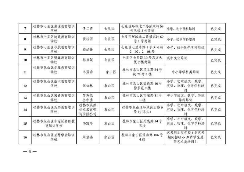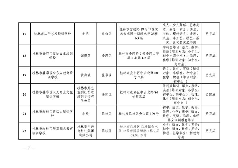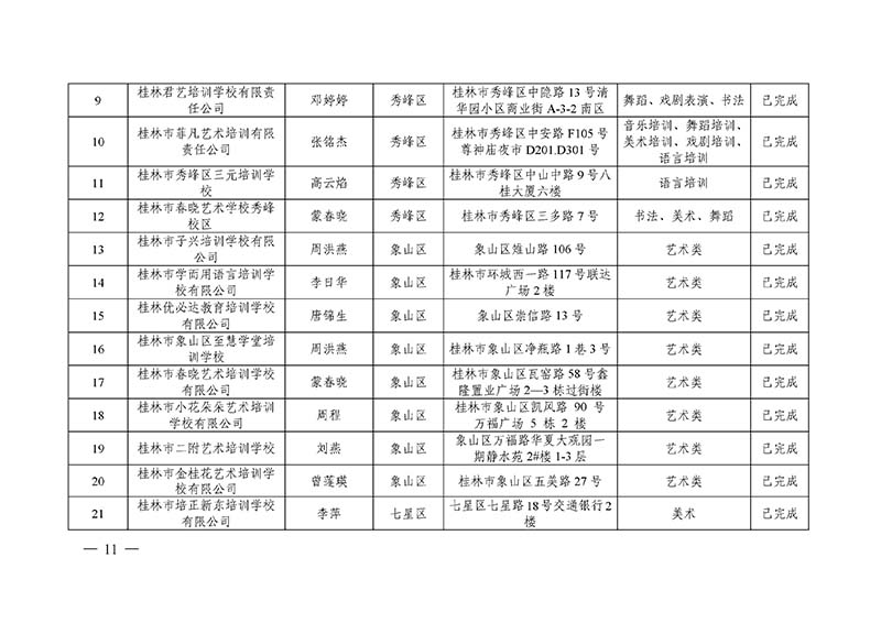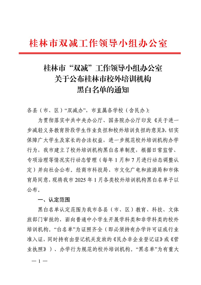 桂林市“双减”工作领导小组办公室关于公布桂林市校外培训机构黑白名单的通知