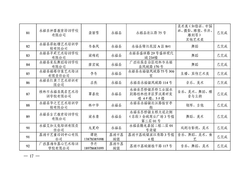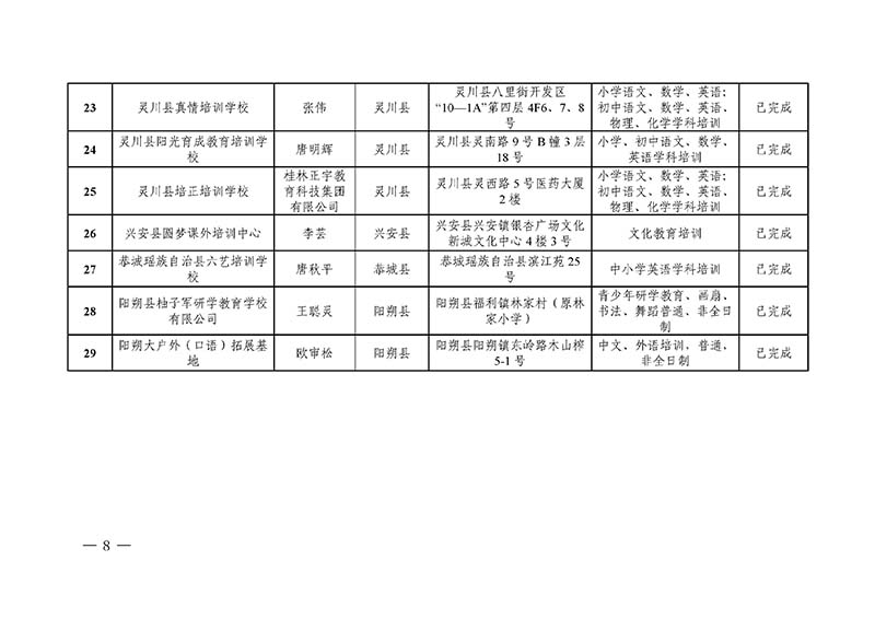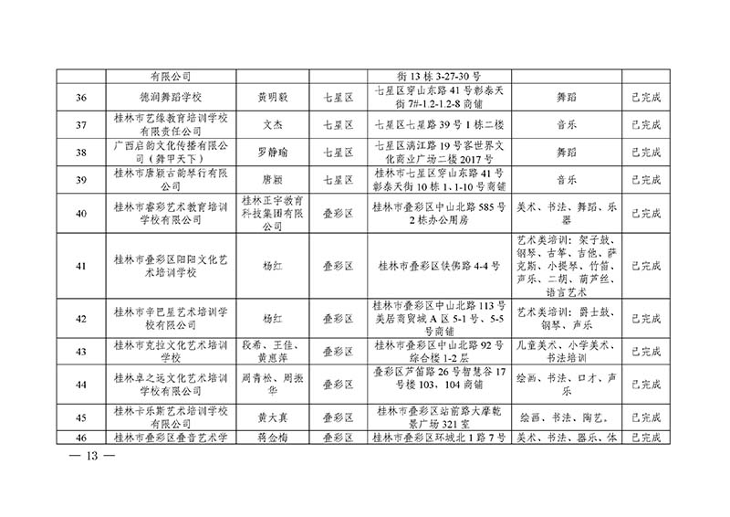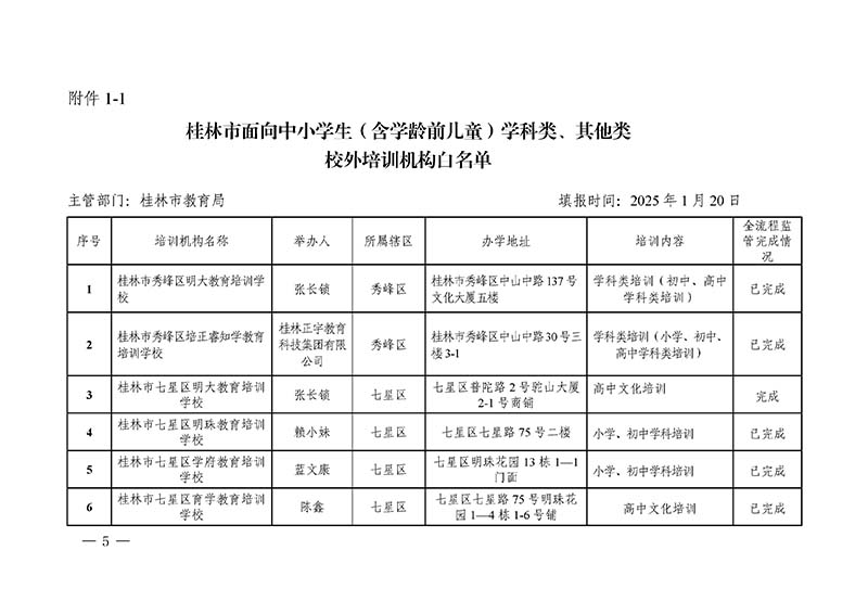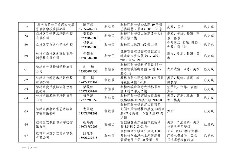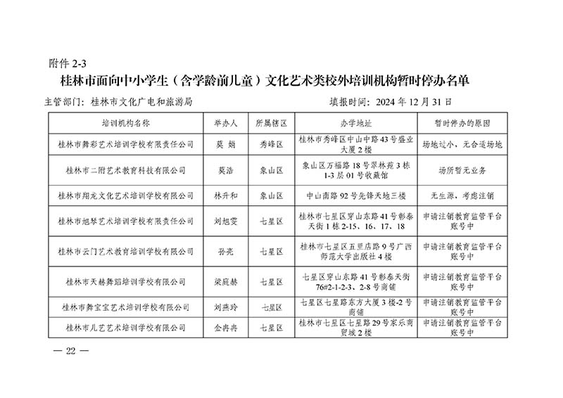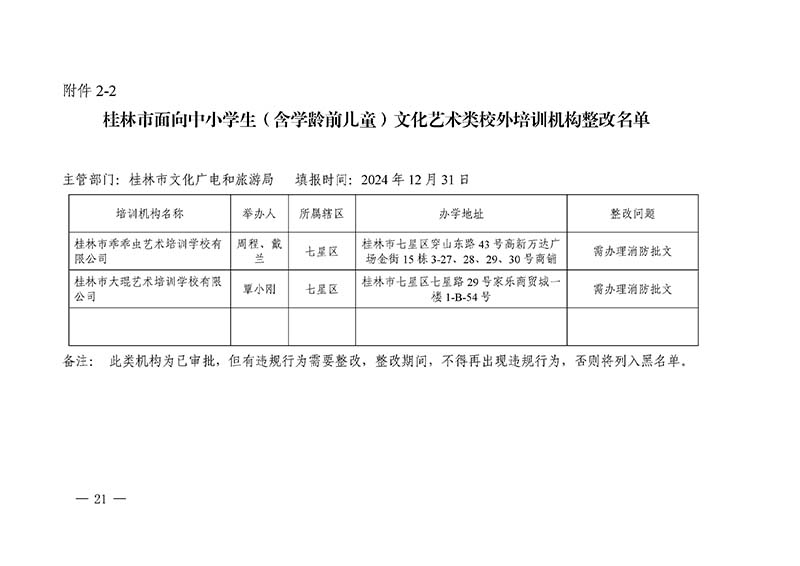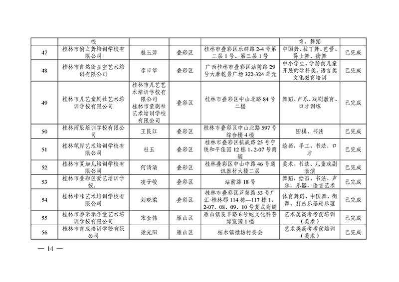 桂林市“双减”工作领导小组办公室关于公布桂林市校外培训机构黑白名单的通知